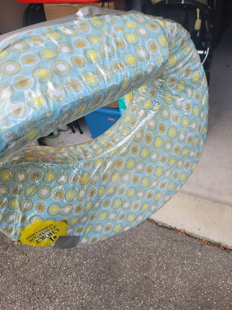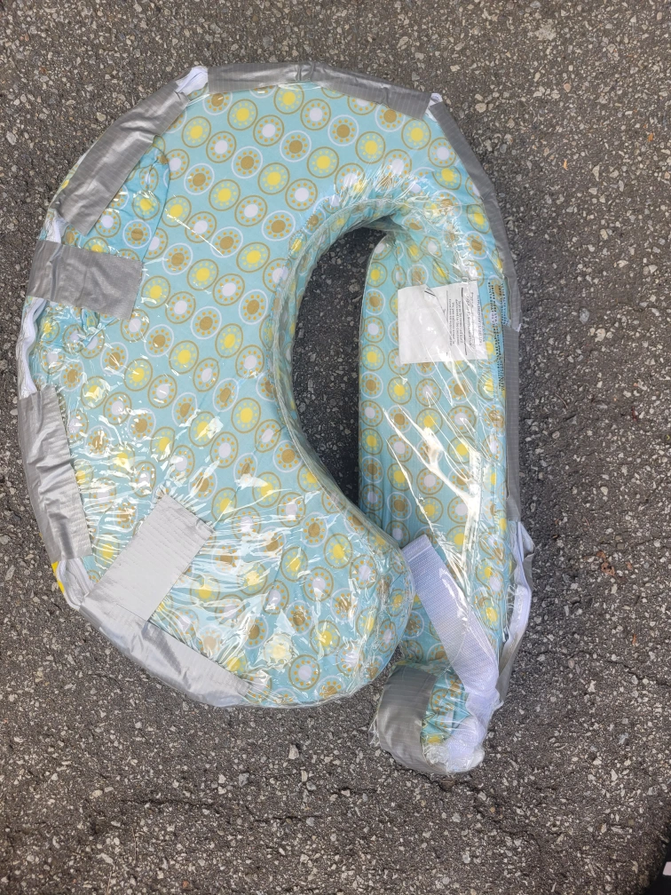 Selling a Boppy nursing pillow that's in excellent condition! It's a great support for both you and your little one during feeding time. It has a cute pattern and is ready for a new home. It's been carefully stored and is super comfy for baby