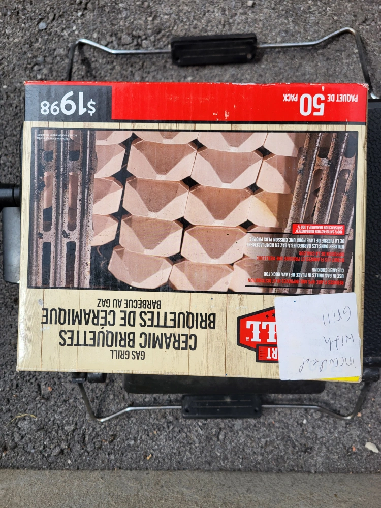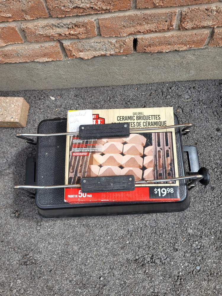 Selling a portable gas grill that comes with ceramic briquettes. It's perfect for small spaces or taking on the go. Included are 50 ceramic briquettes to help with even cooking.
