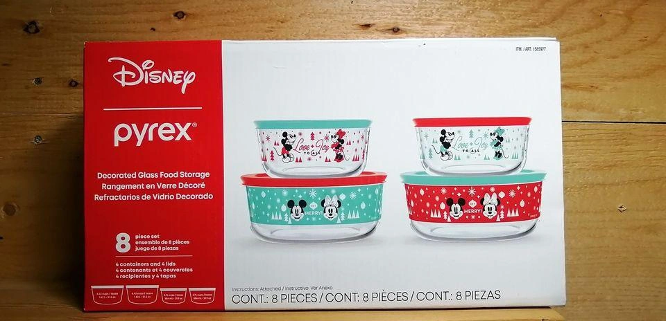 NEW SEALED Pyrex Mickey Minnie Christmas Glass Storage Set