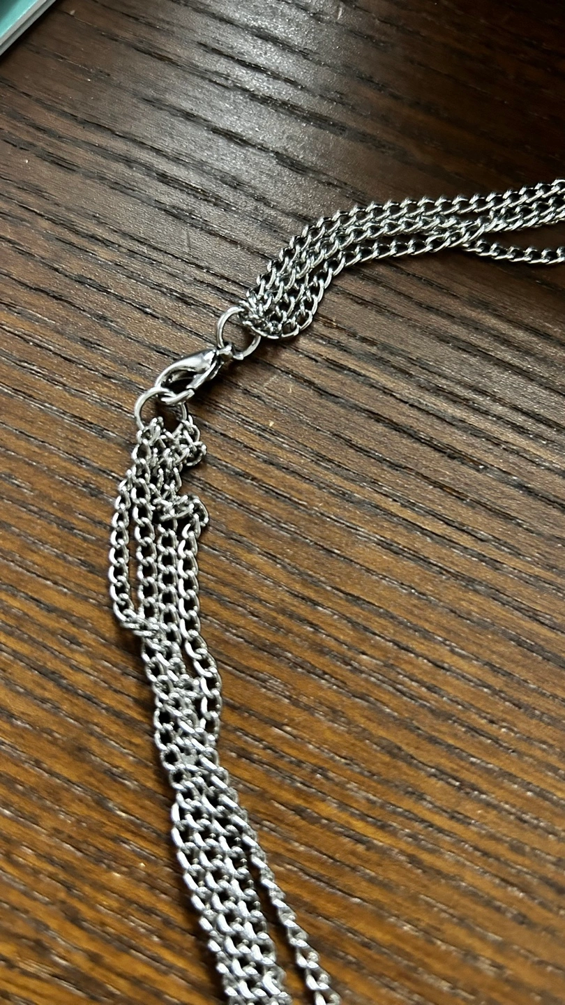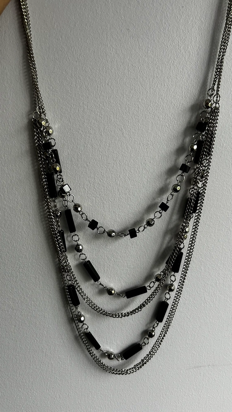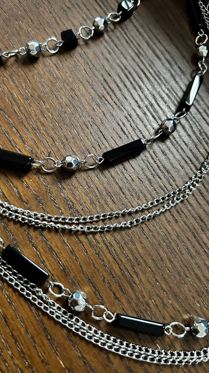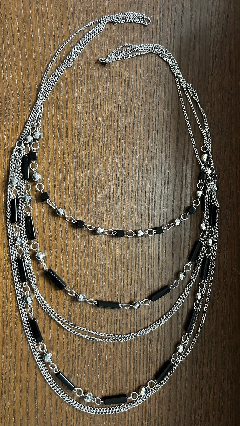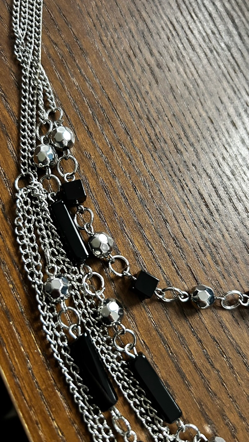 Selling a lovely layered necklace with silver chains and black accents! It's in great condition and adds a touch of elegance to any outfit