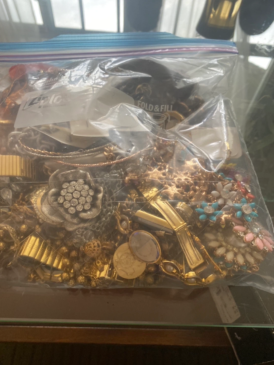 37Selling a bag of assorted jewelry! Includes a variety of necklaces, bracelets, earrings, and other accessories. A great way to add some sparkle to your wardrobe or find unique pieces for crafting