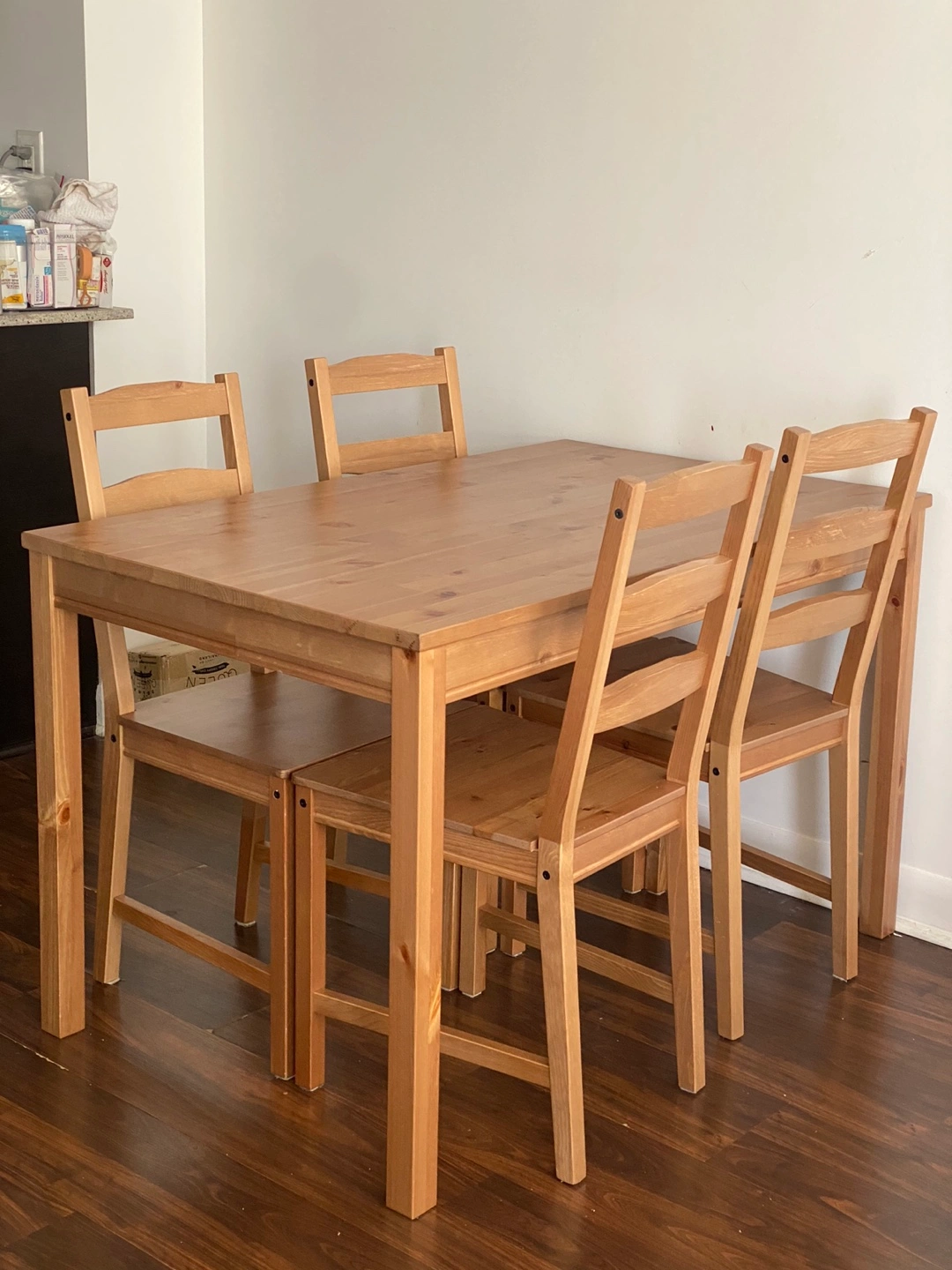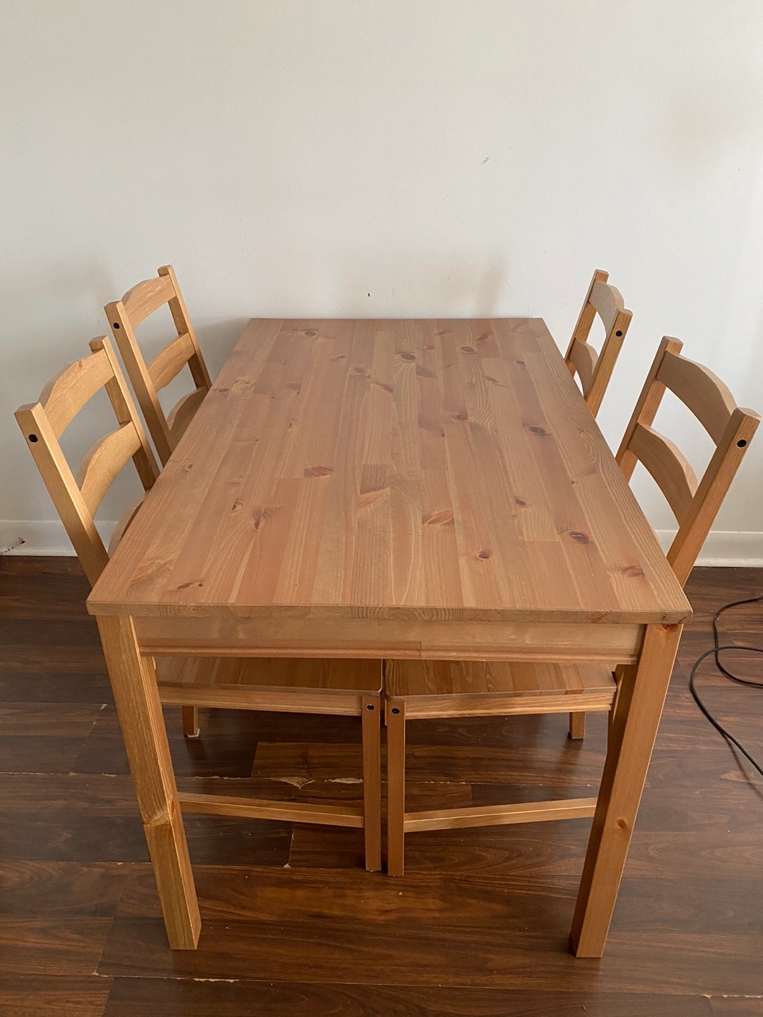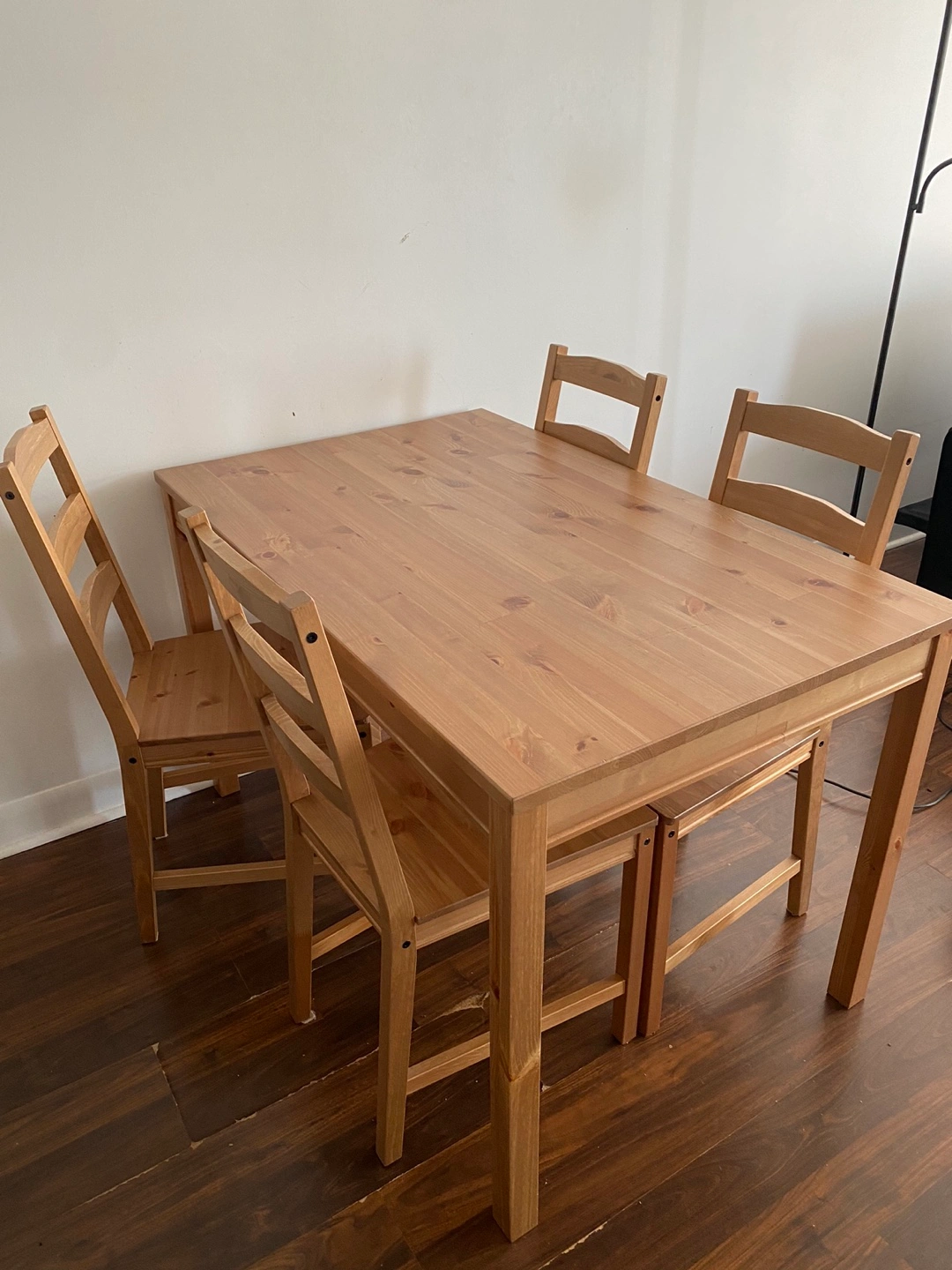 IKEA JOKKMOKK dining table and 4 chairs set, and has been used for barely 1 year.
