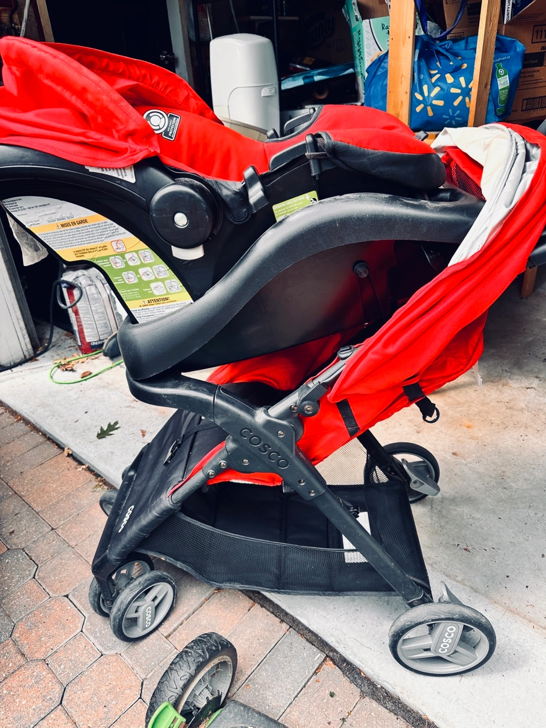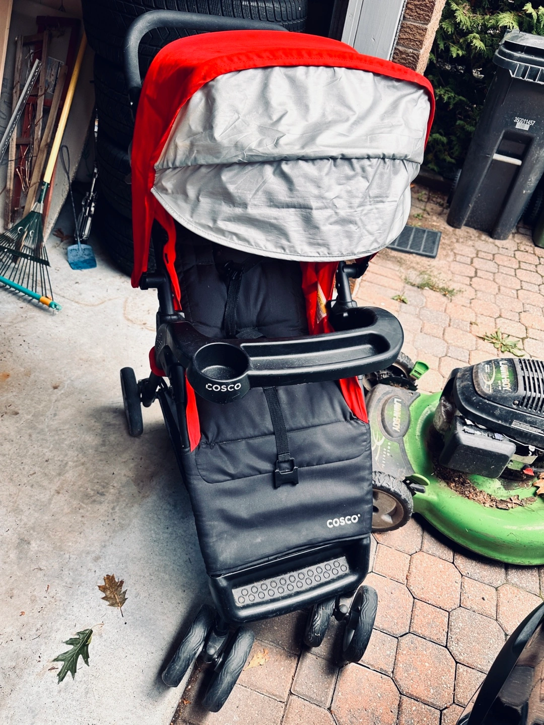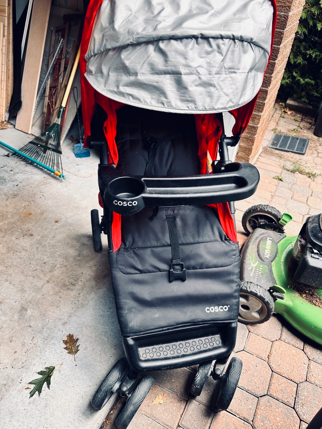 Selling a Cosco stroller in red and black. It's in good used condition and ready for a new home. Perfect for taking your little one on walks around the neighbourhood!