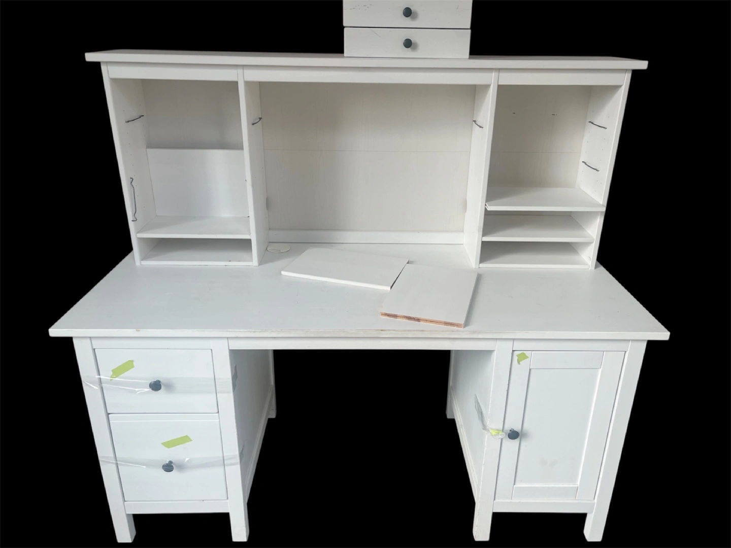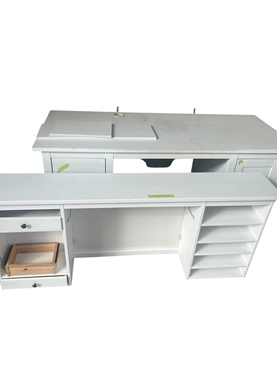 Selling a white desk with a hutch, perfect for a student or home office setup! It features plenty of storage with shelves and drawers. A few minor signs of wear, but overall in good condition and ready for a new home!
