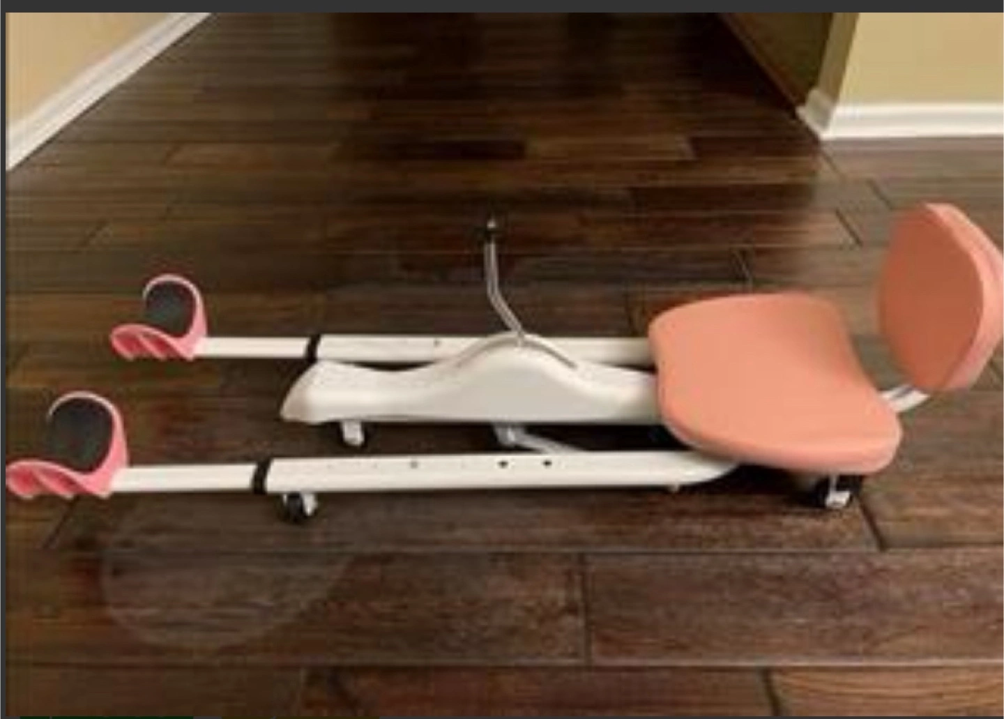 Actual item is teal colored not pink. Brand new, open box but packaging hasn’t been removed and it remains unassembled (quick, minor assembly required)