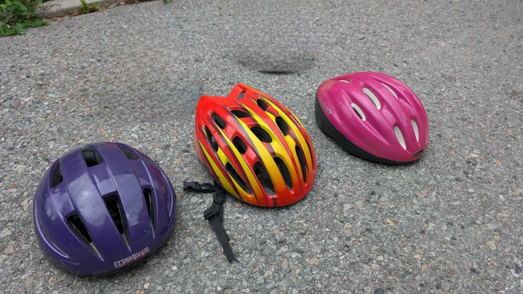 Selling a collection bike helmets in various colours. Great for biking, skating, or scootering. They're in good condition and ready for a new home!