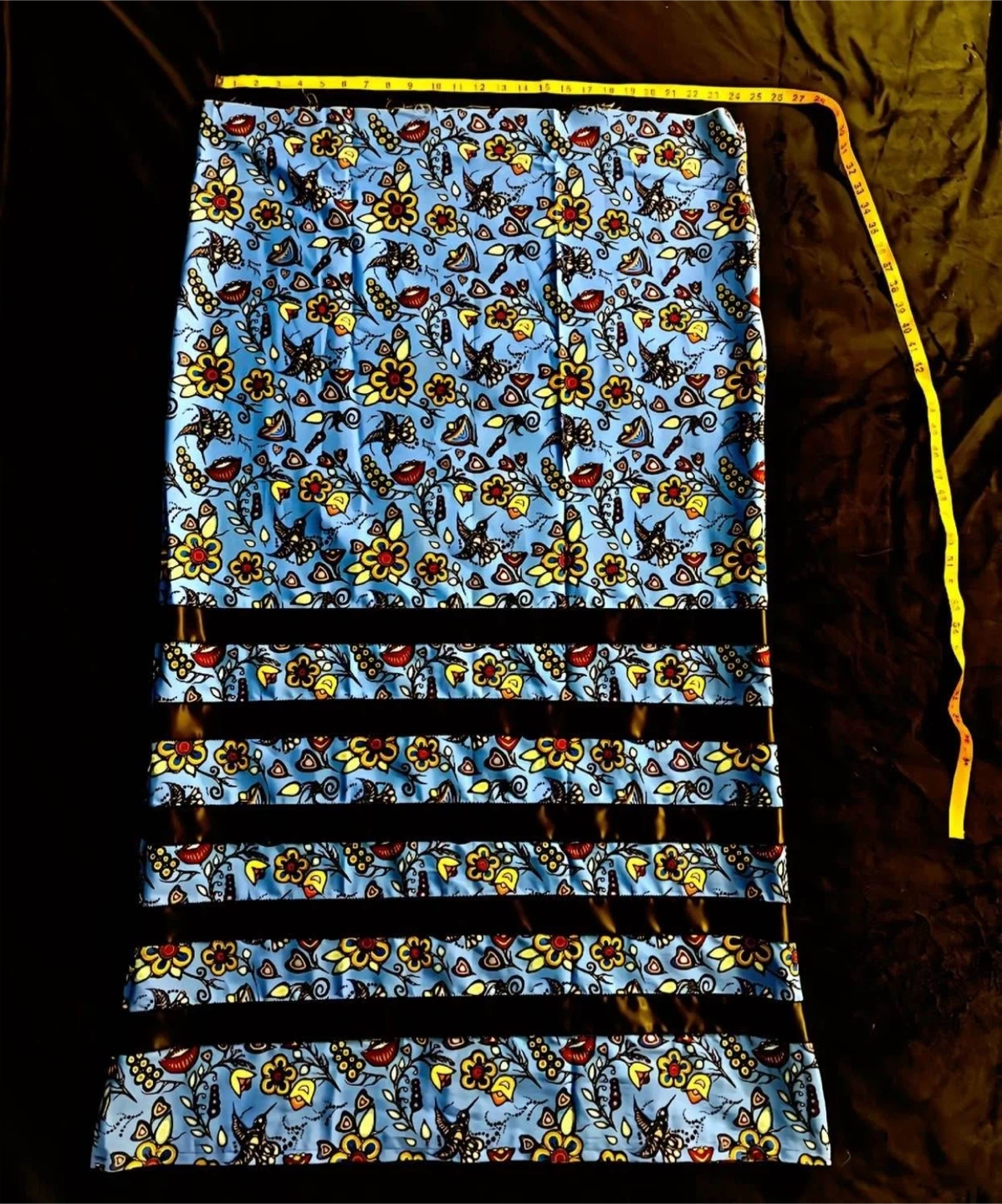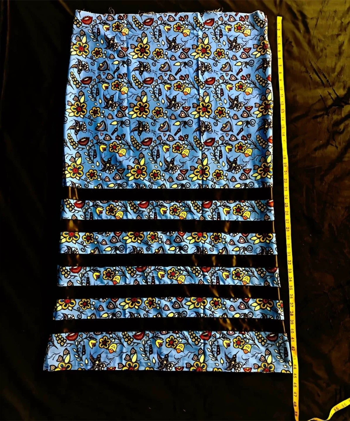 45 inches long. Will need to take off minimum of 3 inches once waist is sized and completed.