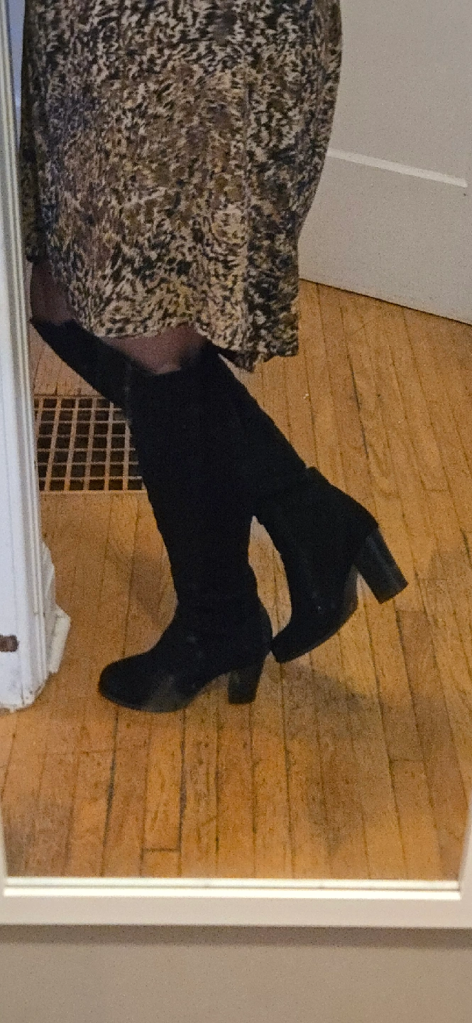 suede knee-high boots in black. They're a size 7.. pick up North york area Bathurst and Lawrence and surrounding meet up