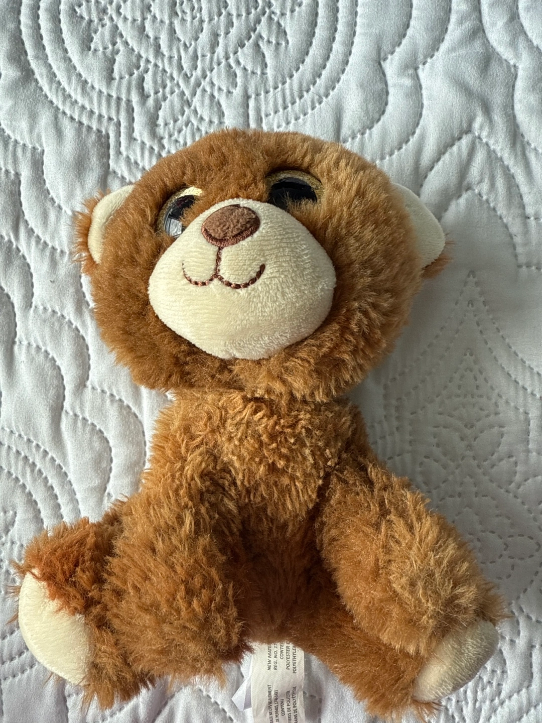 A cute and cuddly brown teddy bear plush toy! Made with polyester fibres and polyethylene grains. Perfect for kids or as a decorative item