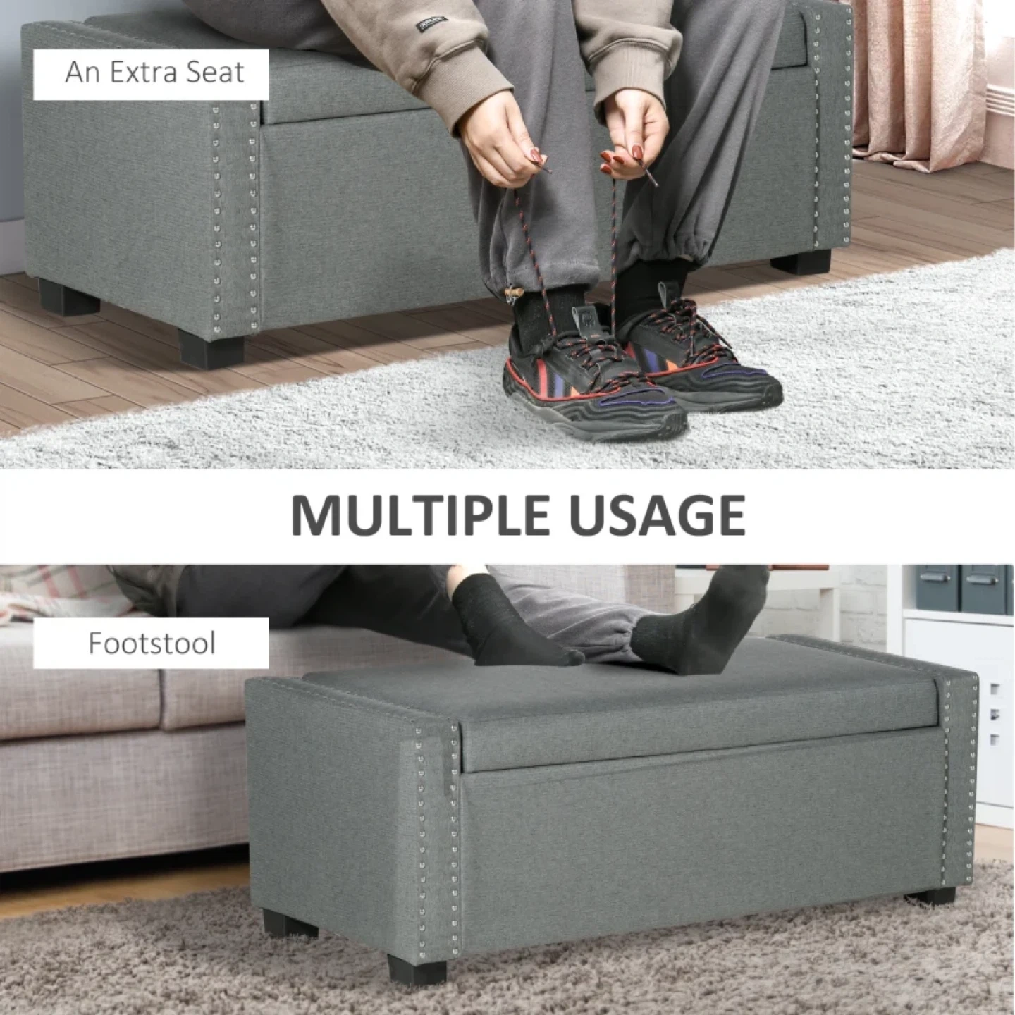 This stylish flip-top storage bench / ottoman is perfect for bedrooms, living rooms, or hallways.