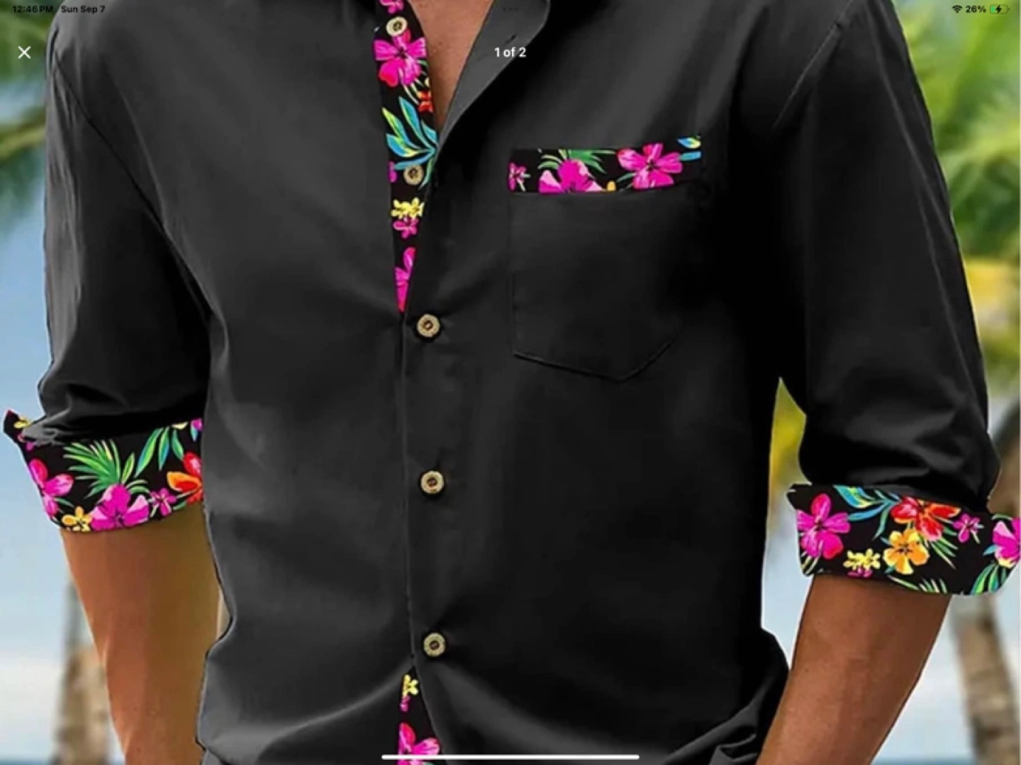 Selling a stylish ADOR shirt in black with a unique floral trim. This shirt features a pocket and button-up design. It's perfect for adding a pop of colour to your wardrobe!