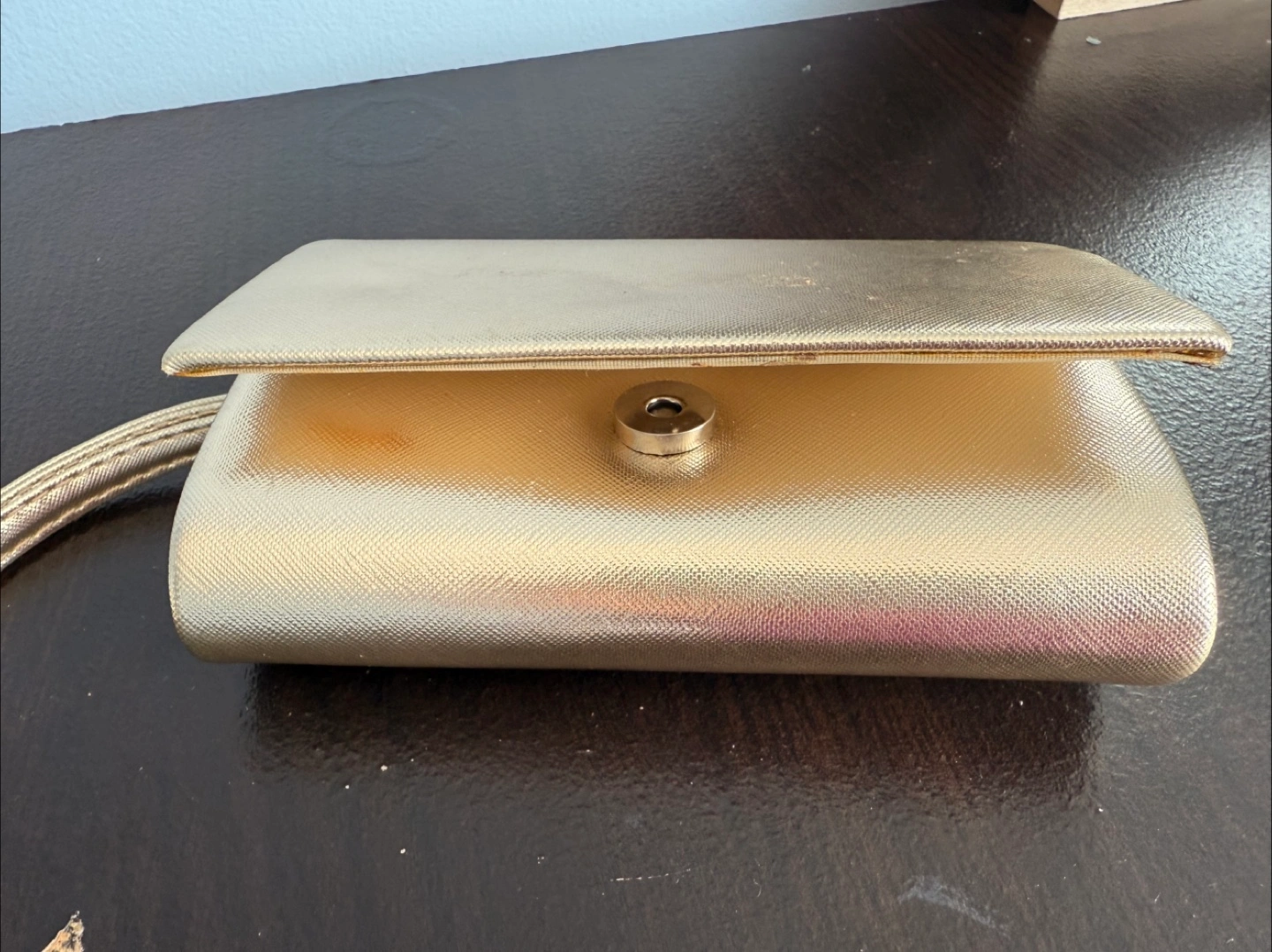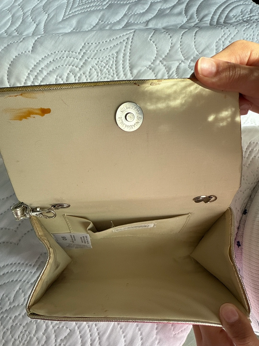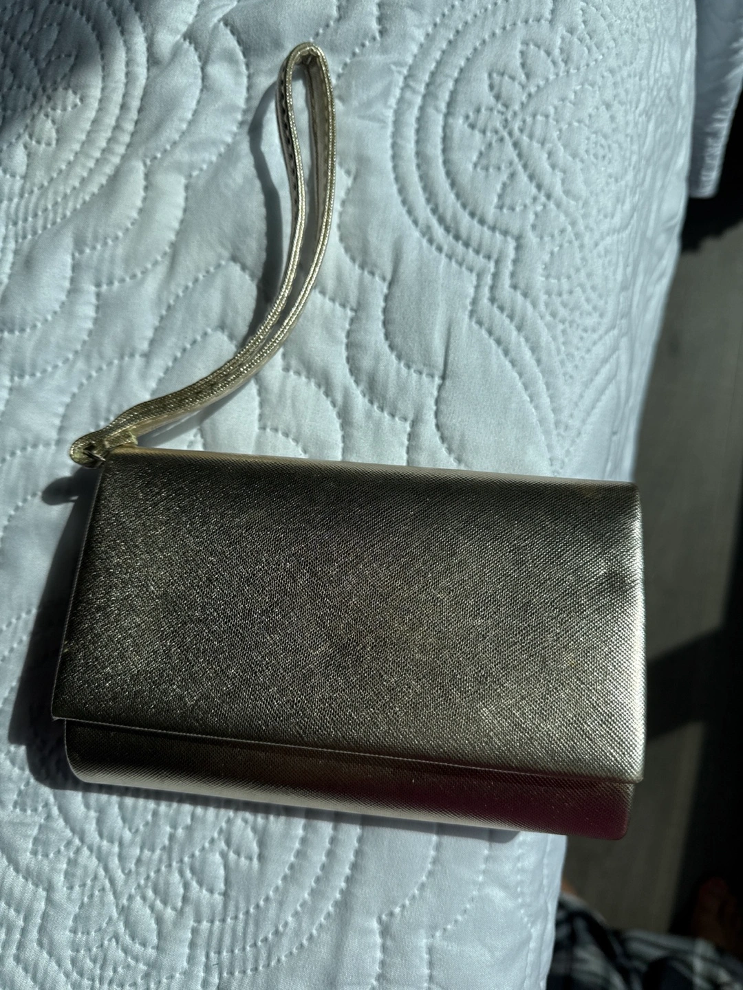 A beautiful gold clutch from Aldo, perfect for evenings out! It's in great condition and ready for a new home. Has a small stain on the inside.