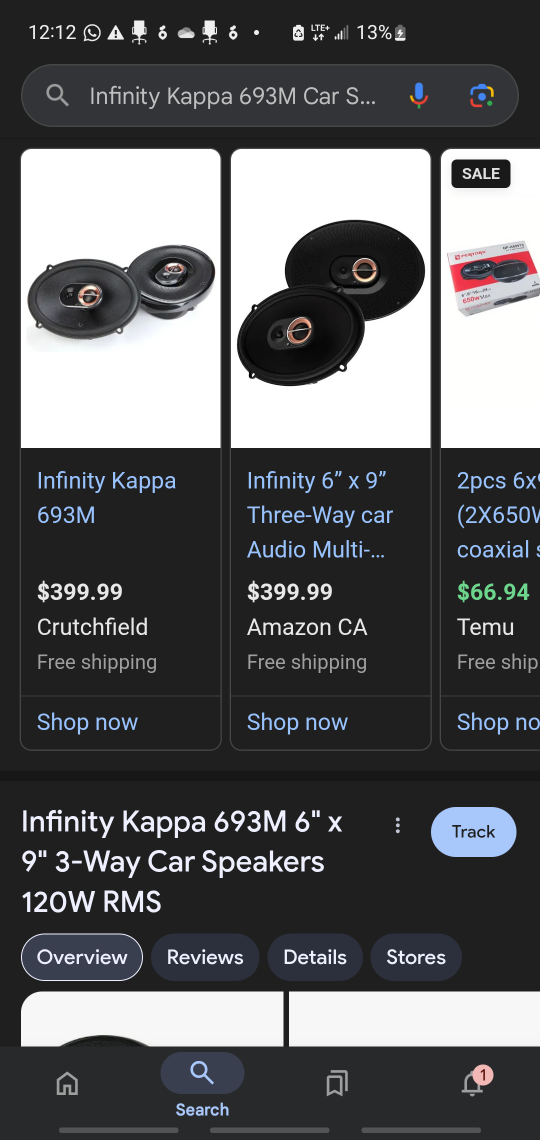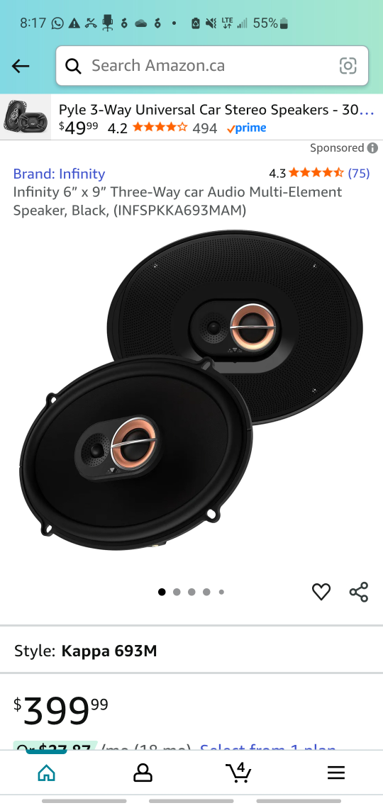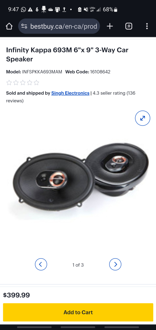 Selling a brand new set of Infinity Kappa 693M Car Speakers (6"x9" 3-Way).