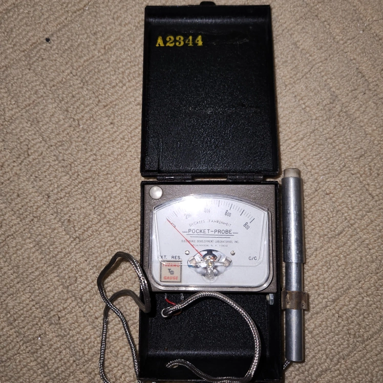 64Selling a vintage Pocket Probe from Electronic Development Laboratories Inc. It measures in degrees Fahrenheit up to 800degrees. Comes working with the original case and probe!