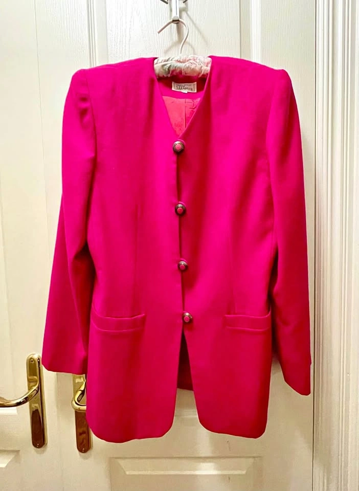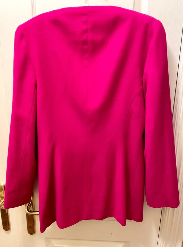 100% pure virgin wool fuschia elegant women’s blazer (size 10) and tapered pants (size 6) designed by Stefi Lara. Got so many compliments on this outfit!So hard to find this quality anymore. Great condition!! If it’s listed, no need to ask! IT’S AVAILABLE!! Asking $24 for the blazer and $25 for the pants or make me an offer! Check out my other listings too!