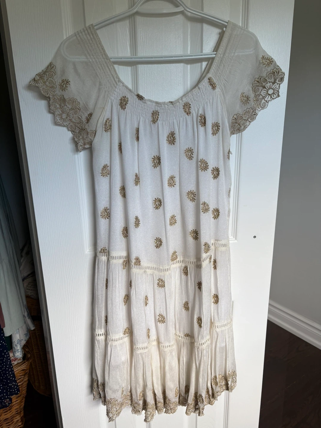 Selling a Muche et Muchette dress, one size. Fits like a small/medium. It's a lovely white dress with gold detailing. Perfect for summer or vacation!
