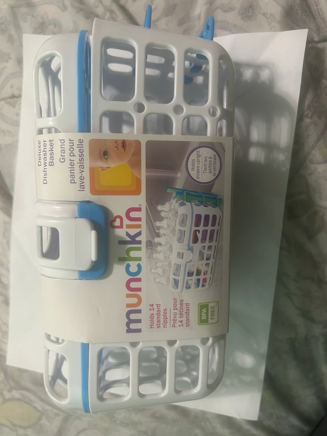 Selling a like-new Munchkin Deluxe Dishwasher Basket! It's perfect for holding up to 14 standard nipples and also holds straws upright. BPA Free