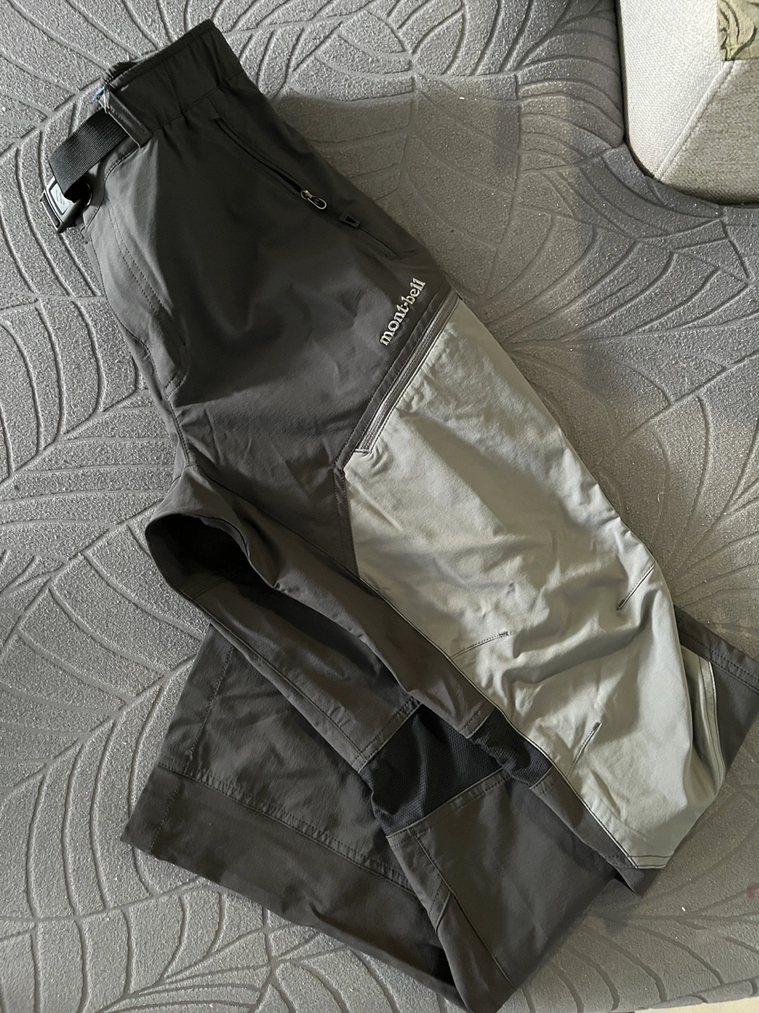 Selling a pair of Montbell Versalite pants in size small/medium. They are in new condition and ready for your next adventure! The pants feature a sleek design with a combination of dark and light grey panels. Perfect for outdoor activities or casual wear!