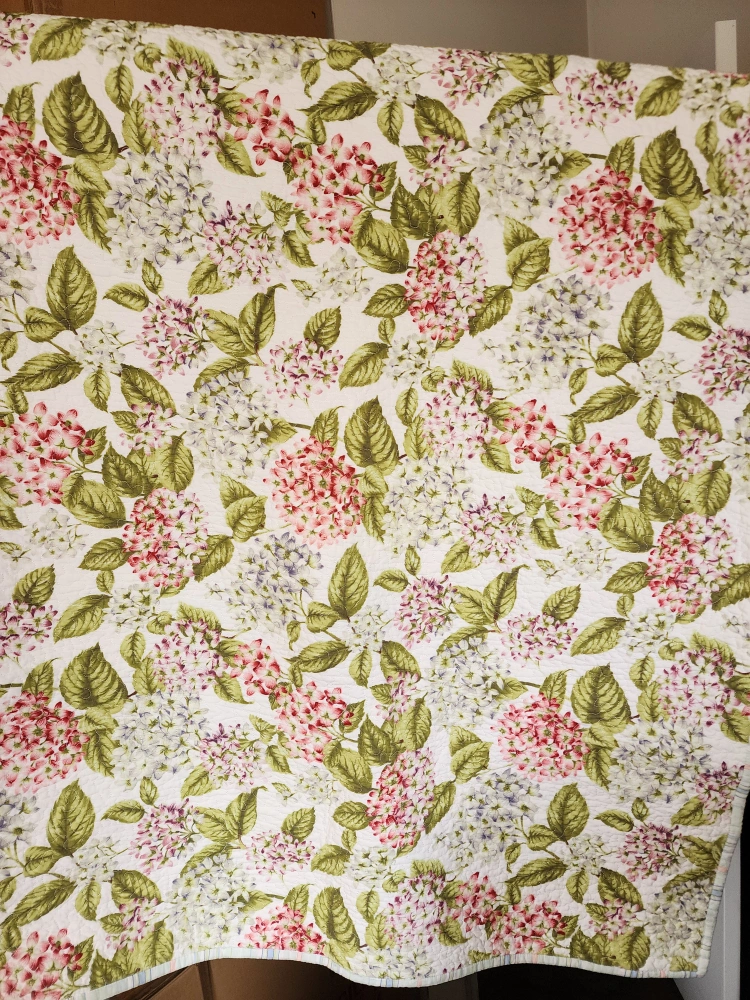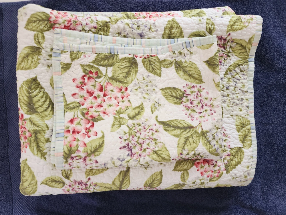 New, beautiful floral quilt in excellent condition! Sizes 62 x 80 plus 1 matching pillocase $65 BUYER HAS TO PICK UP CASH ONLY
