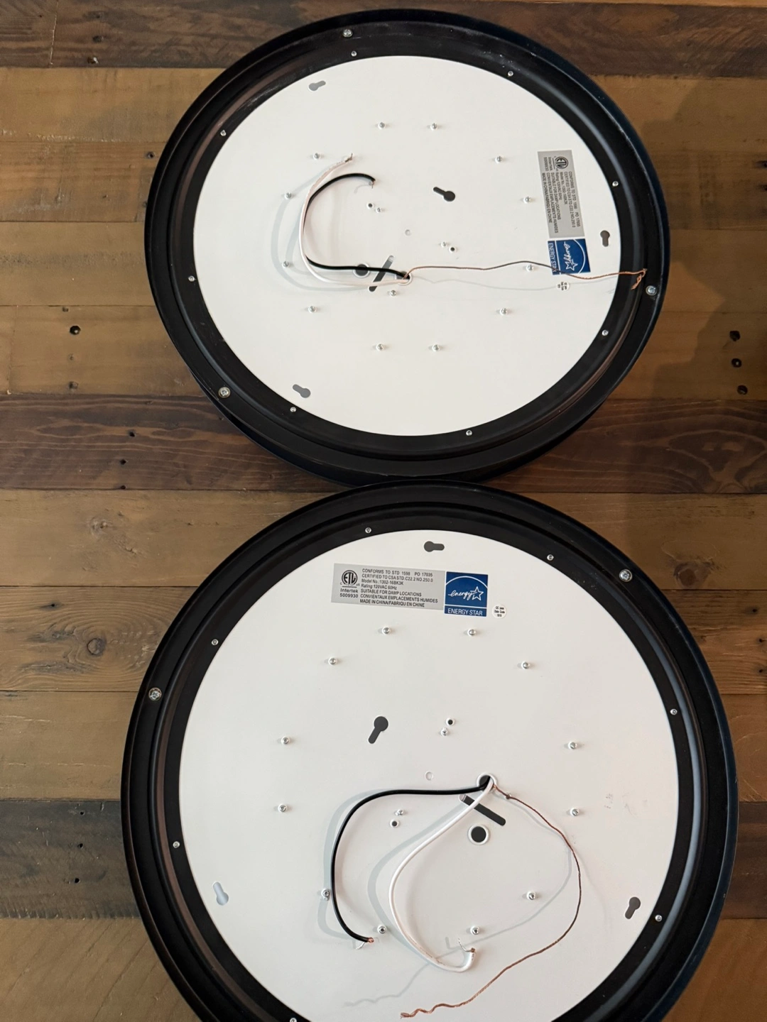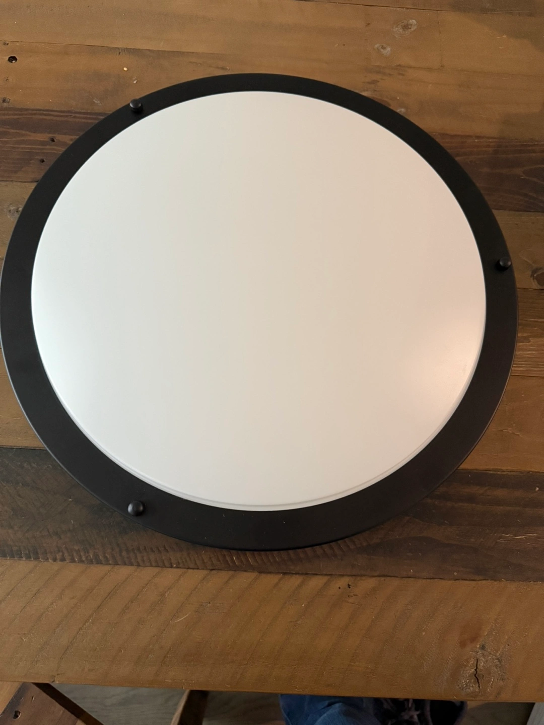 Selling 2 flush mount ceiling lights with black trim! It's in great shape andready to brighten up your space. It's a simple and modern design that would fit nicely in any room