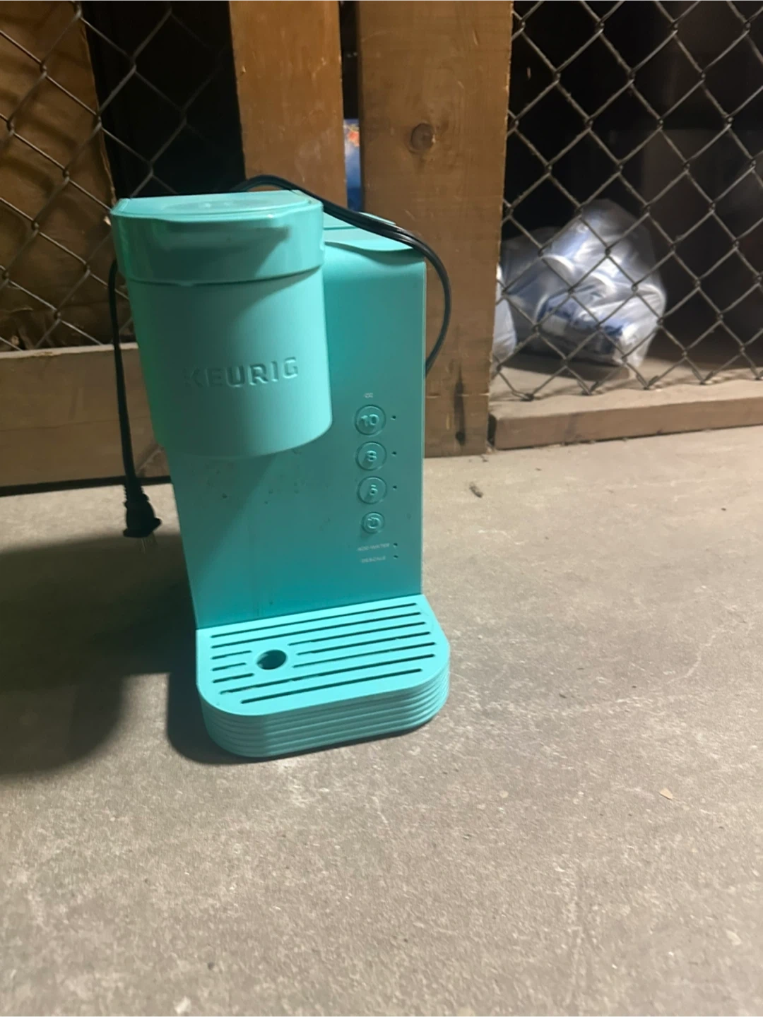 Selling a Keurig single serve coffee maker in a lovely turquoise colour. It's perfect for quickly brewing a cup of coffee in the morning. If you're interested in a convenient and easy-to-use coffee maker, this could be a great fit for your kitchen! Open for negotiations!!!