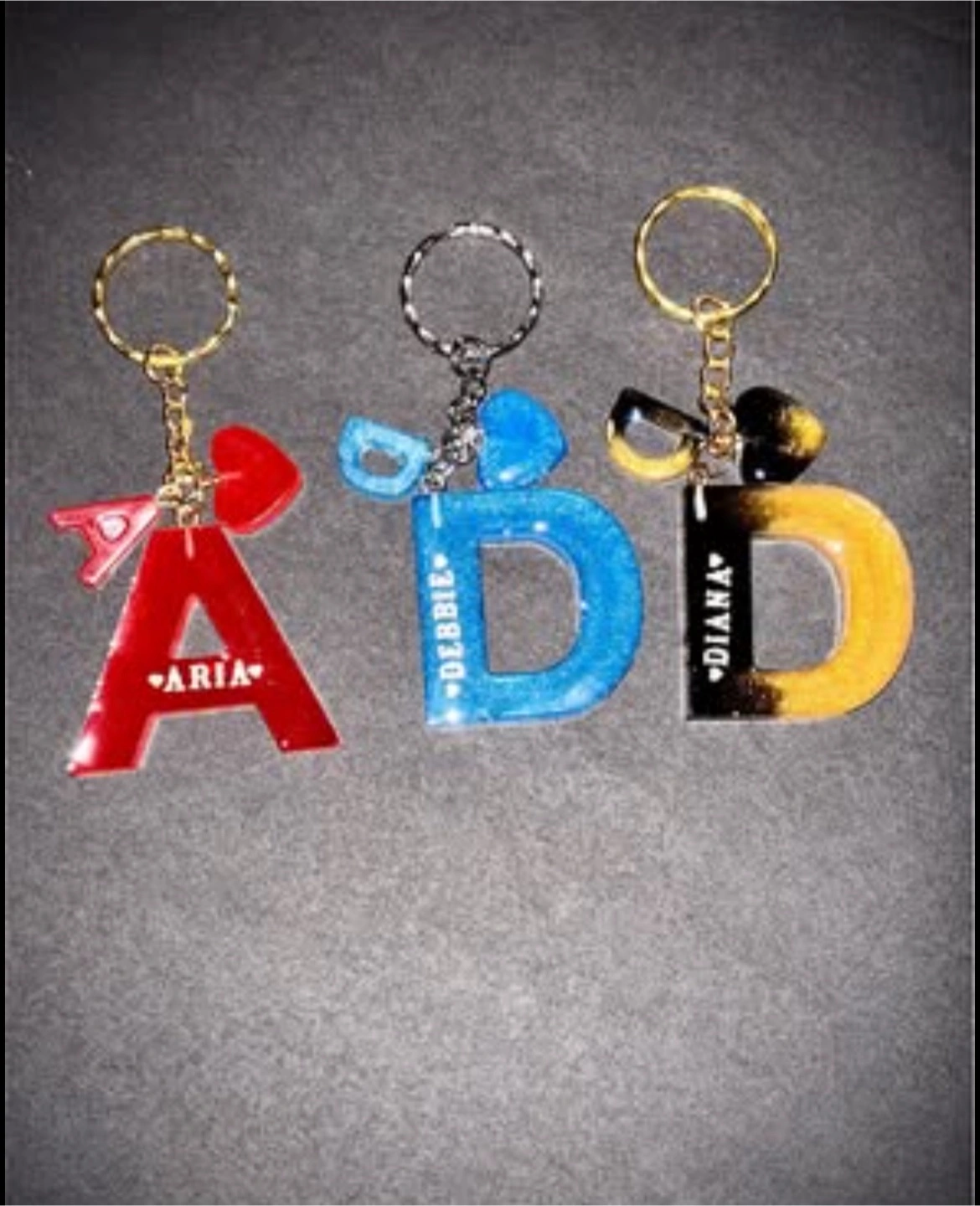 Selling these cute custom initial resin keychains! They are handmade and come in different colours with glitter. Each keychain is unique and sealed in its original packaging. Perfect for personalizing your keys or as a gift