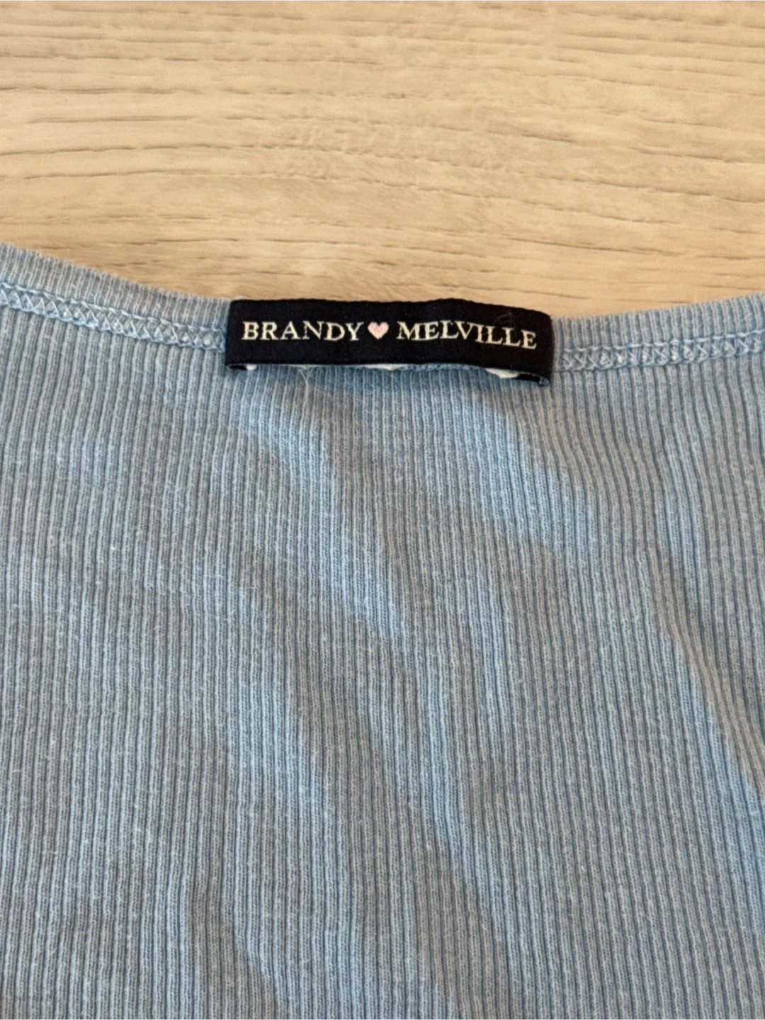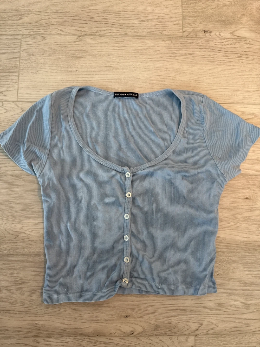 A cute and casual light blue ribbed top from Brandy Melville! It features a button-up design and a comfortable fit. Perfect for everyday wear!