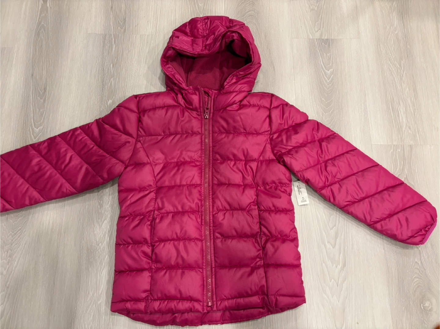 Pink 8T from Old Navy hooded, fleece lined puffer jacket $20