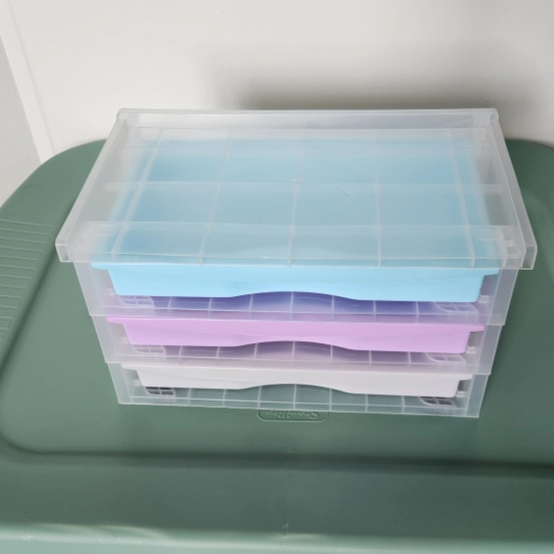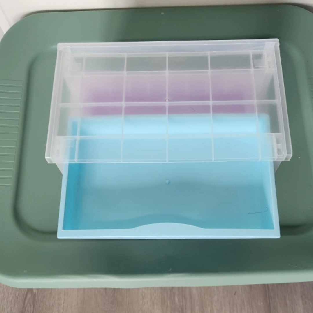 The drawer organizer is basically new. I only used it for a very short time in side another bin to store some stuff. But decided it took up too much space.