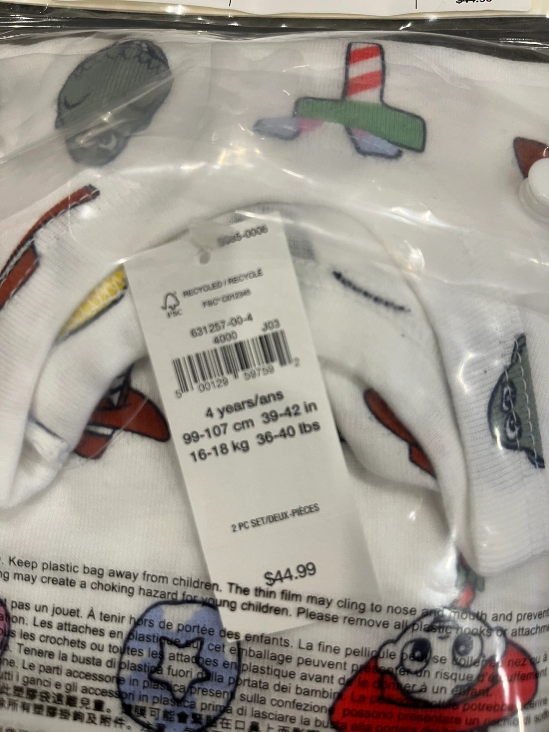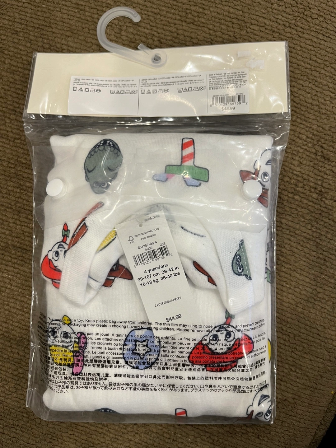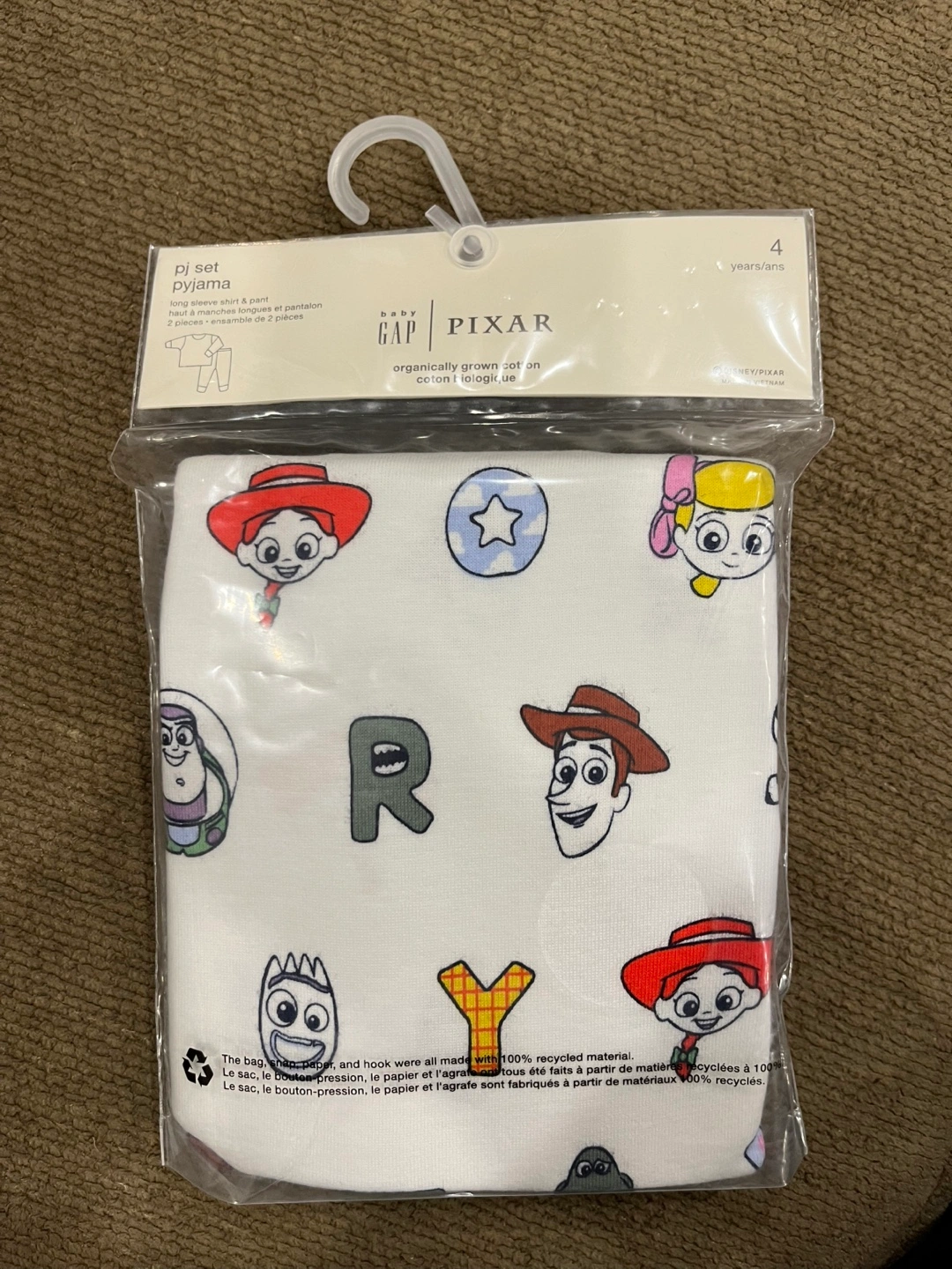 I'm selling a brand new Gap Kids pajama set featuring Pixar's Toy Story characters! It's a size 4 and comes in the original packaging. The set includes a long sleeve shirt and pants. Originally bought for $44.99!