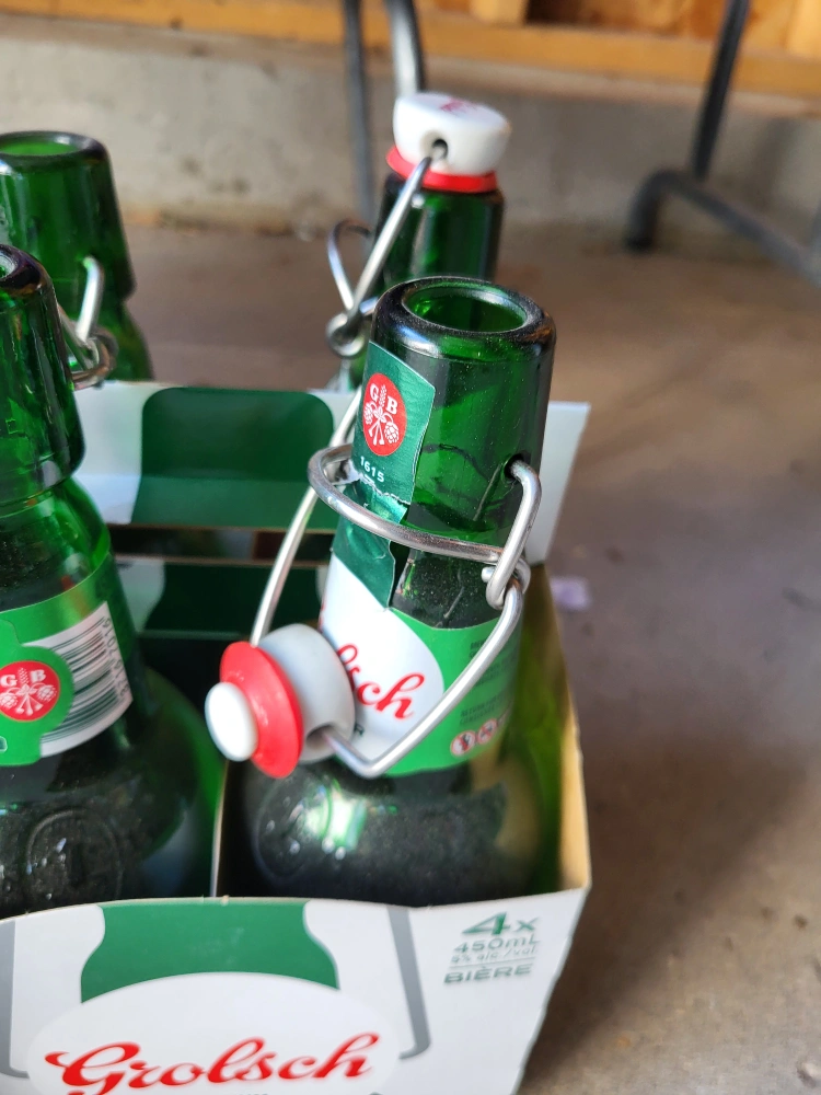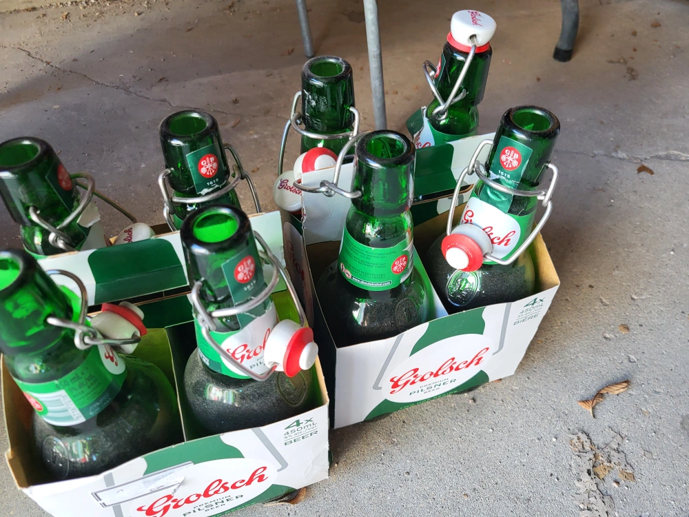 Selling two 4-packs of Grolsch Pilsner beer bottles EMPTY. Each bottle is 450ml. $2 each or 8/$10