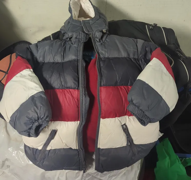 Cozy puffer jacket from The Children's Place, perfect for keeping your little one warm! It's a size XS (4) and features a stylish colour block design with navy, red, and white. The jacket is in great condition and ready for a new home! 🥕