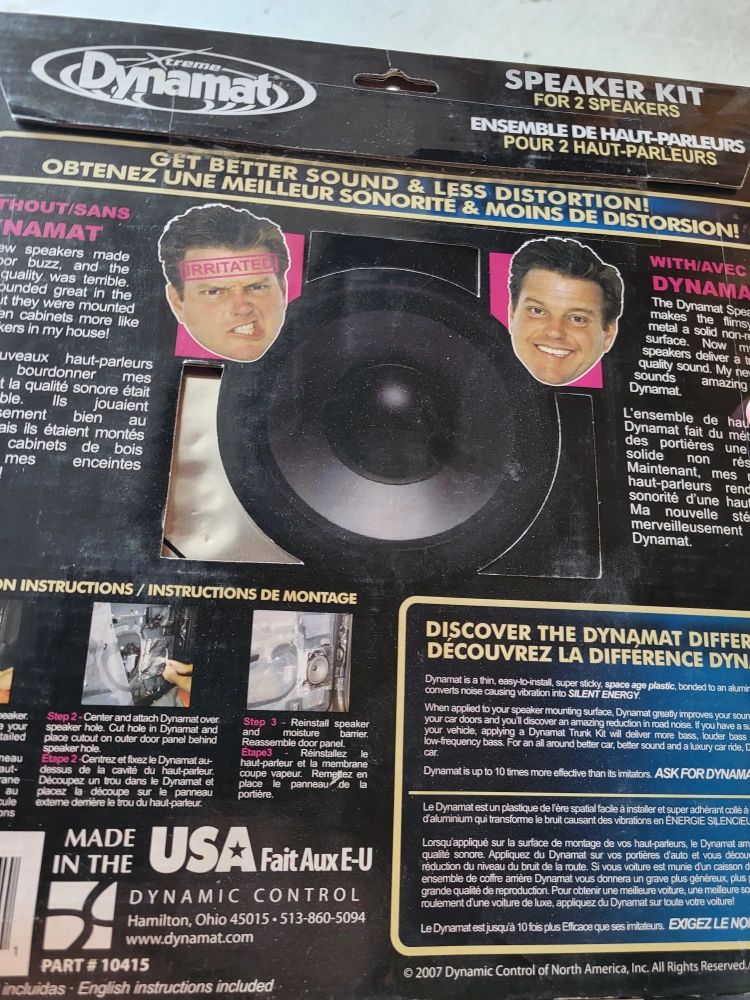 Selling a Dynamat Xtreme Speaker Kit. It contains 2 sheets of Dynamat, designed to eliminate speaker panel distortion and improve sound quality in your car. Get better sound and less distortion with this easy-to-install kit!
