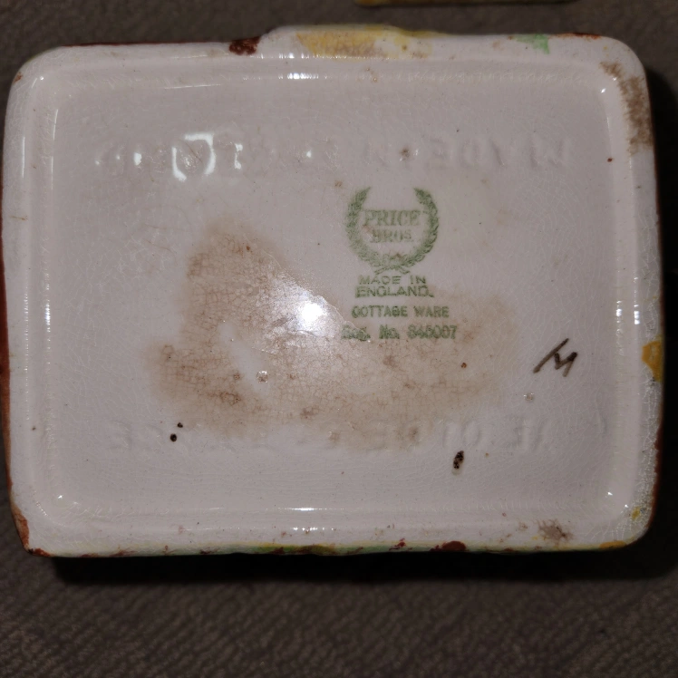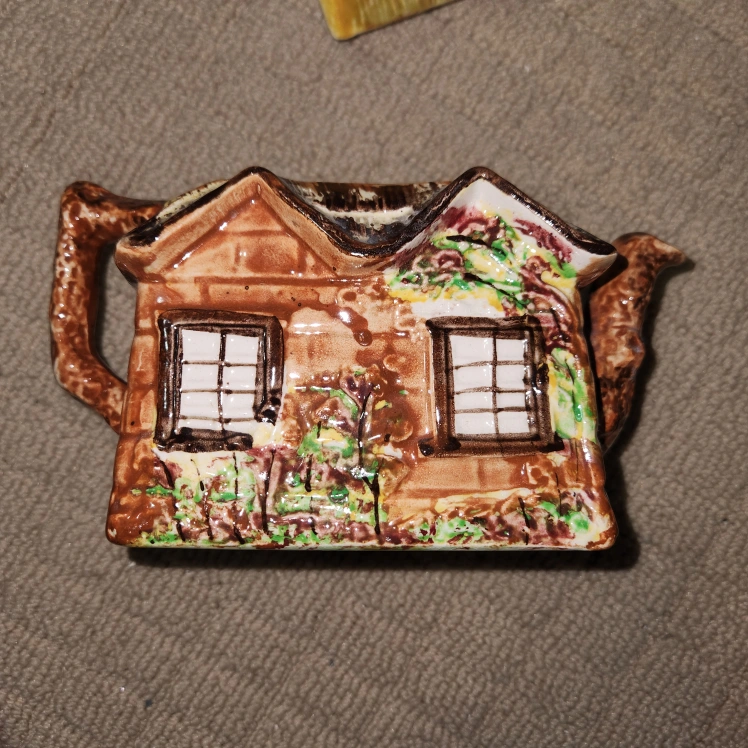 64Selling a charming Price Bros Cottage Ware teapot! It's a unique piece made in England, featuring a delightful cottage design. Perfect for adding a touch of whimsy to your tea time or as a decorative item