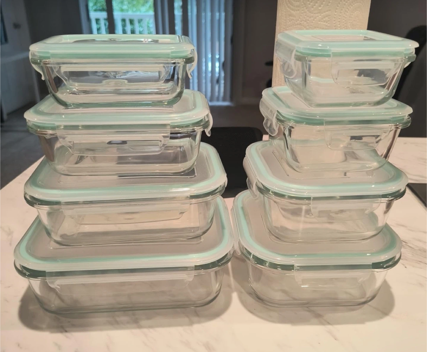 8-pack glass food storage containers! These containers come with airtight lids and are perfect for meal prep, leftovers, or packing lunches.