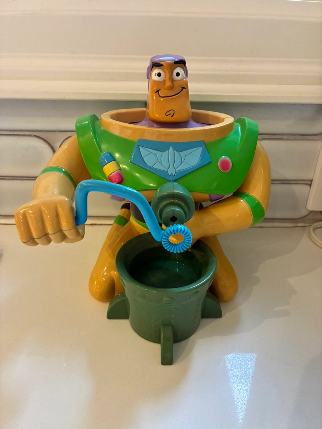 Vintage from 1996! Buzz Lightyear bubble blower from Toy Story! It's in good condition and ready for some bubbly fun. Perfect for kids who love Toy Story and making bubbles.