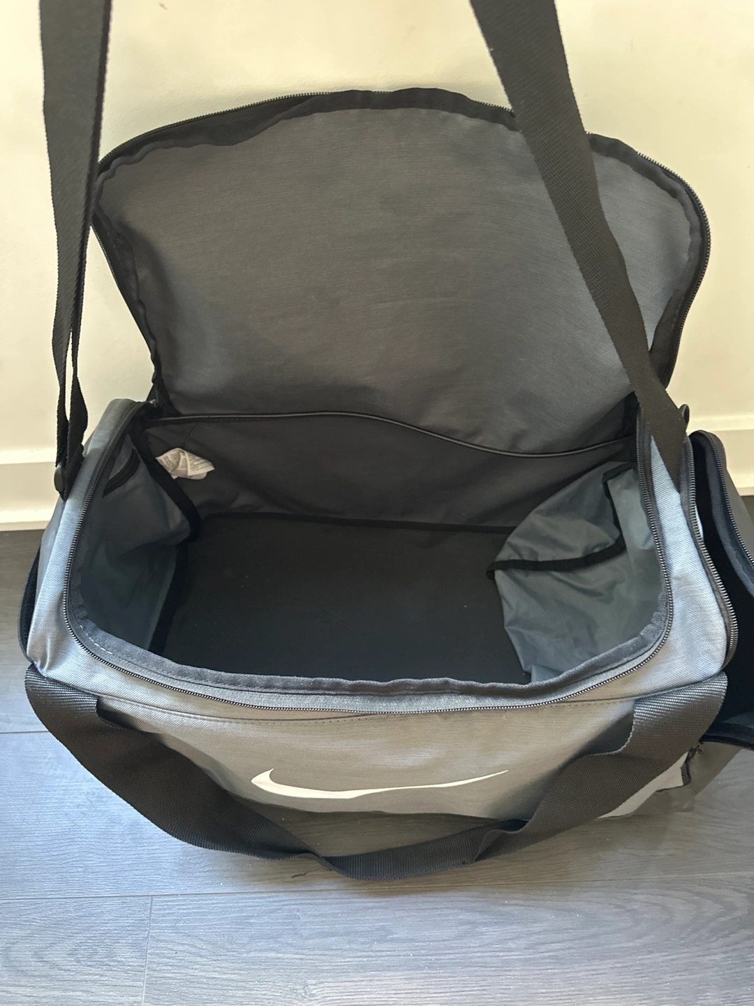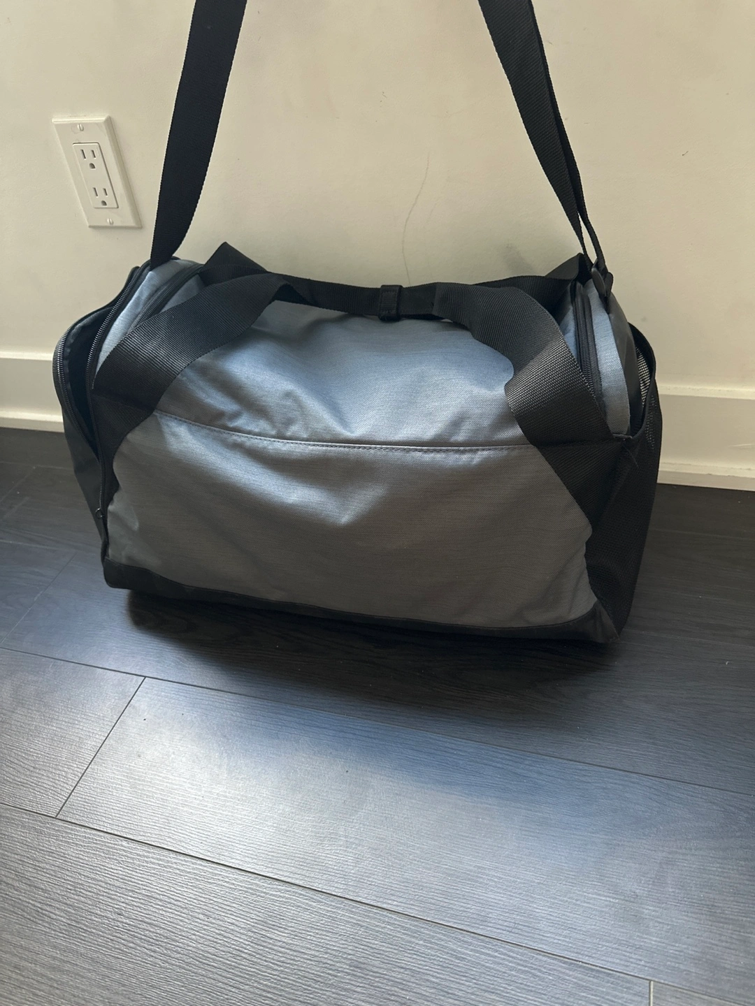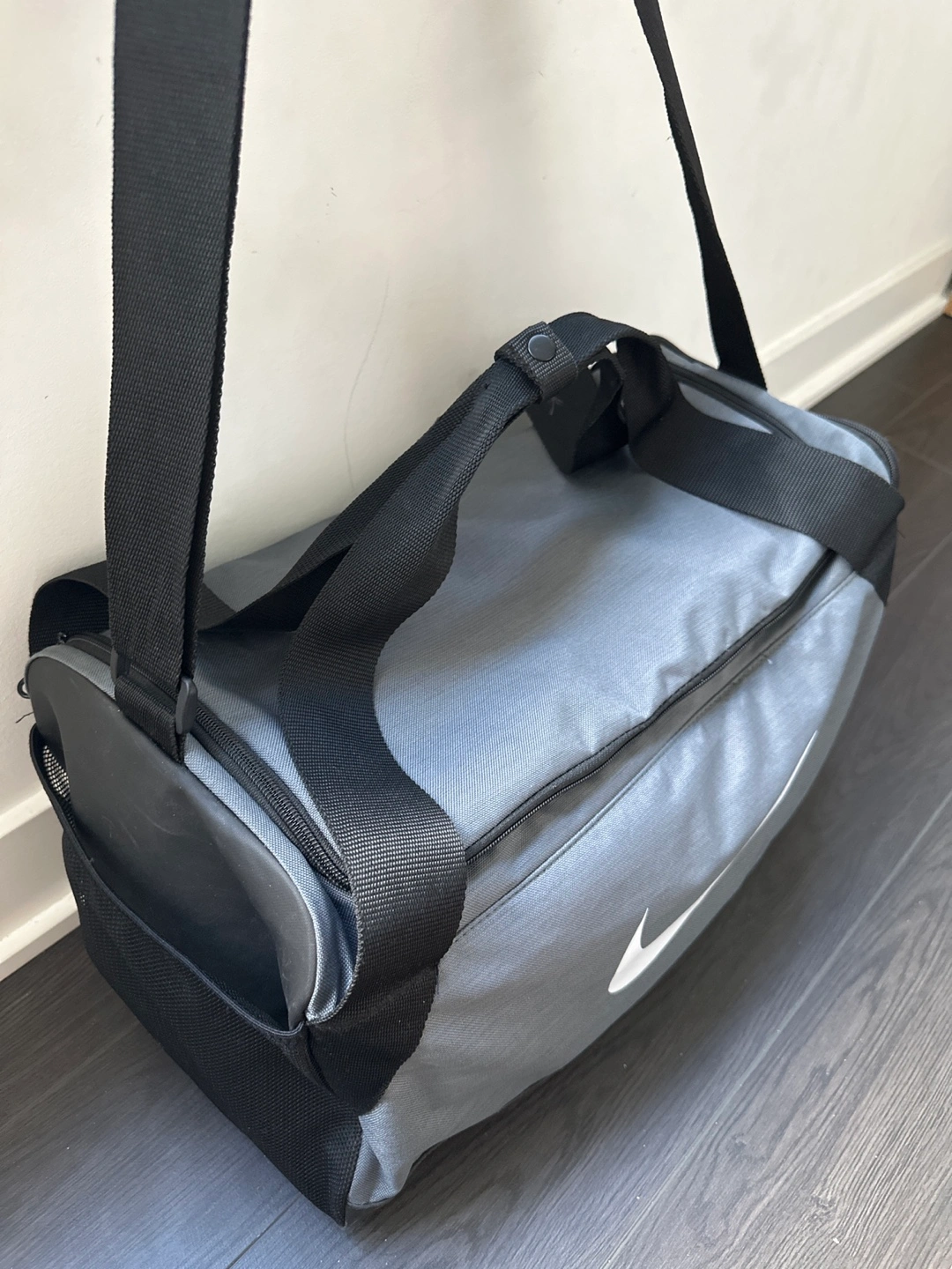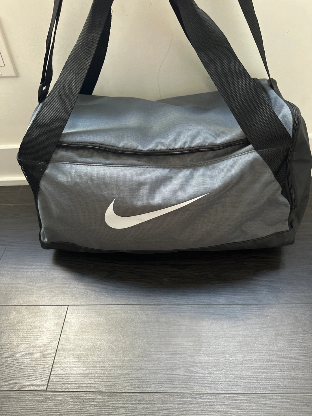 25Selling a grey Nike duffle bag. It's in perfect shape and great for the gym or a weekend getaway!