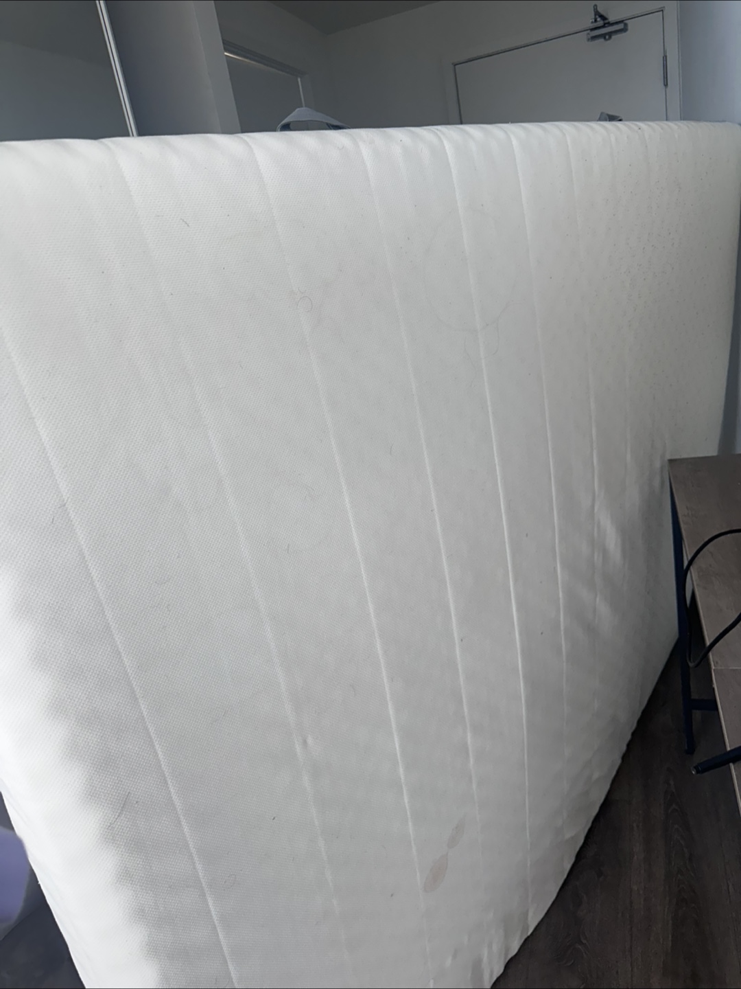 Selling a queen size mattress. It's in good condition and ready for a new home! You can remove the sheet to wash it or just get a new one from IKEA.