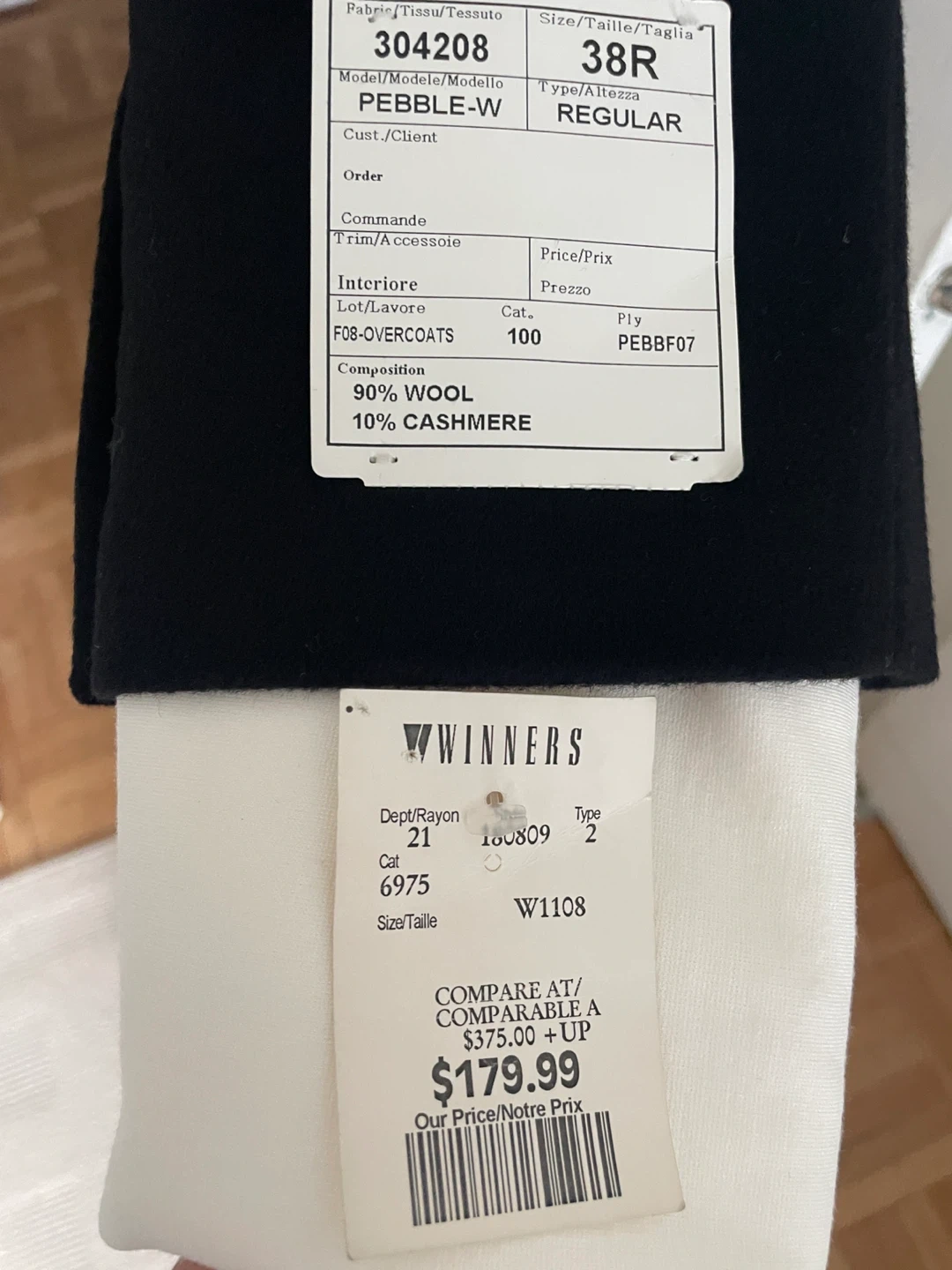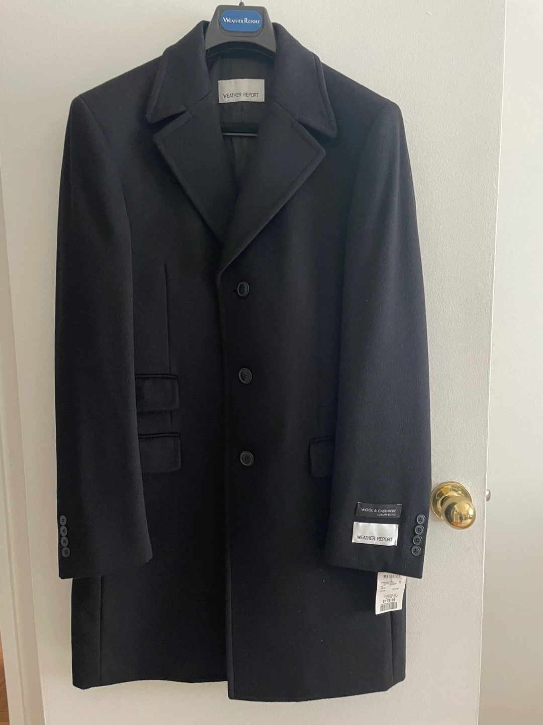 Selling a new with tags Weather Report overcoat, size 38 (M). It’s made from a blend of 90% wool and 10% cashmere, super soft and warm. Originally bought for $179.99 at Winners, never worn.