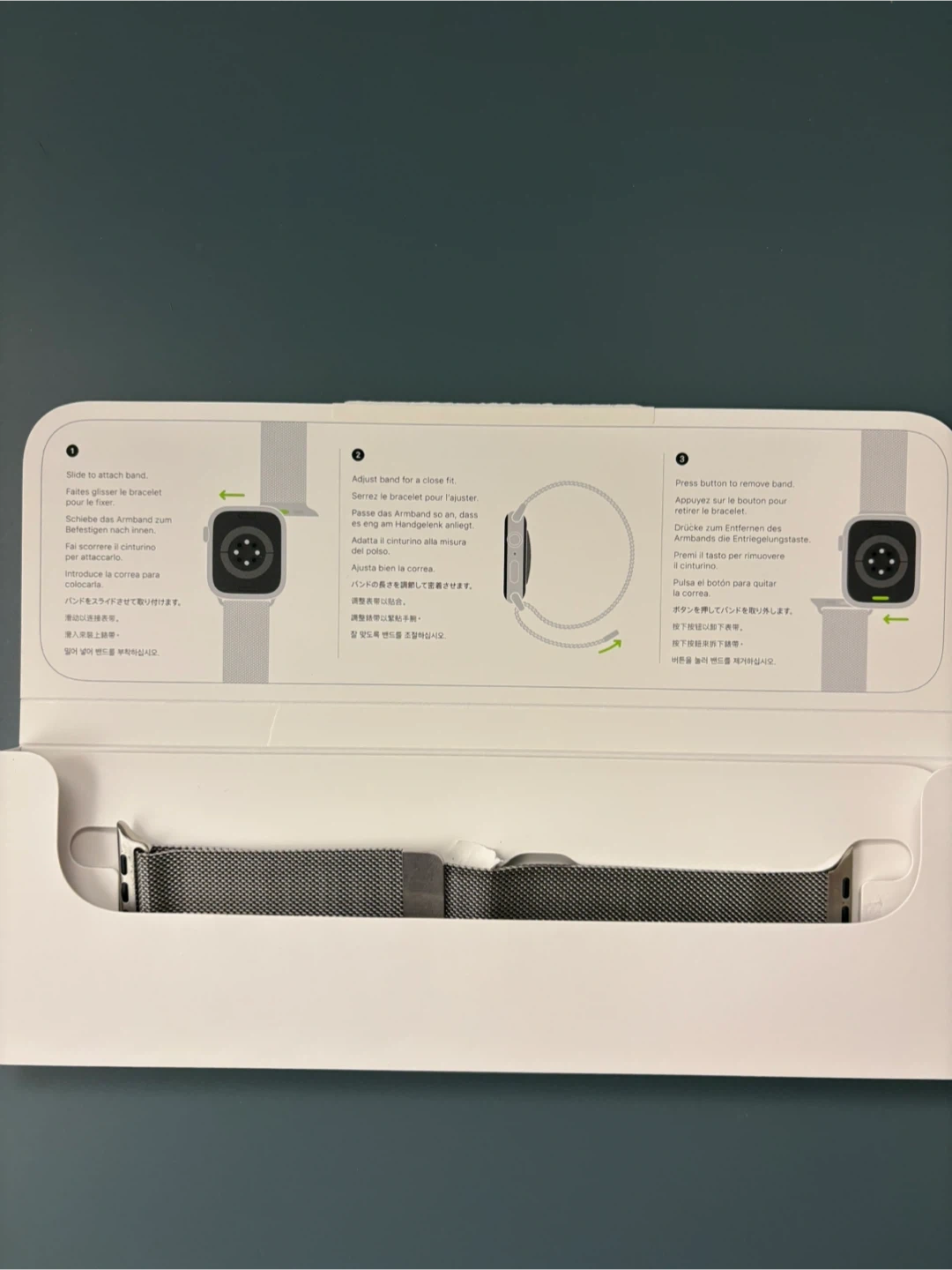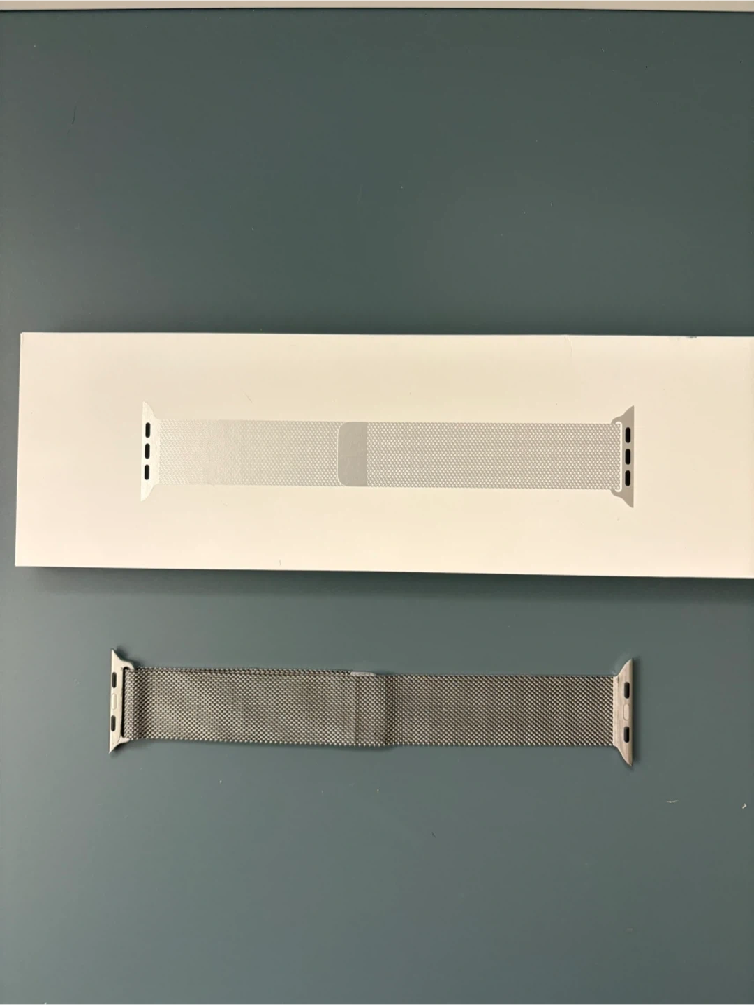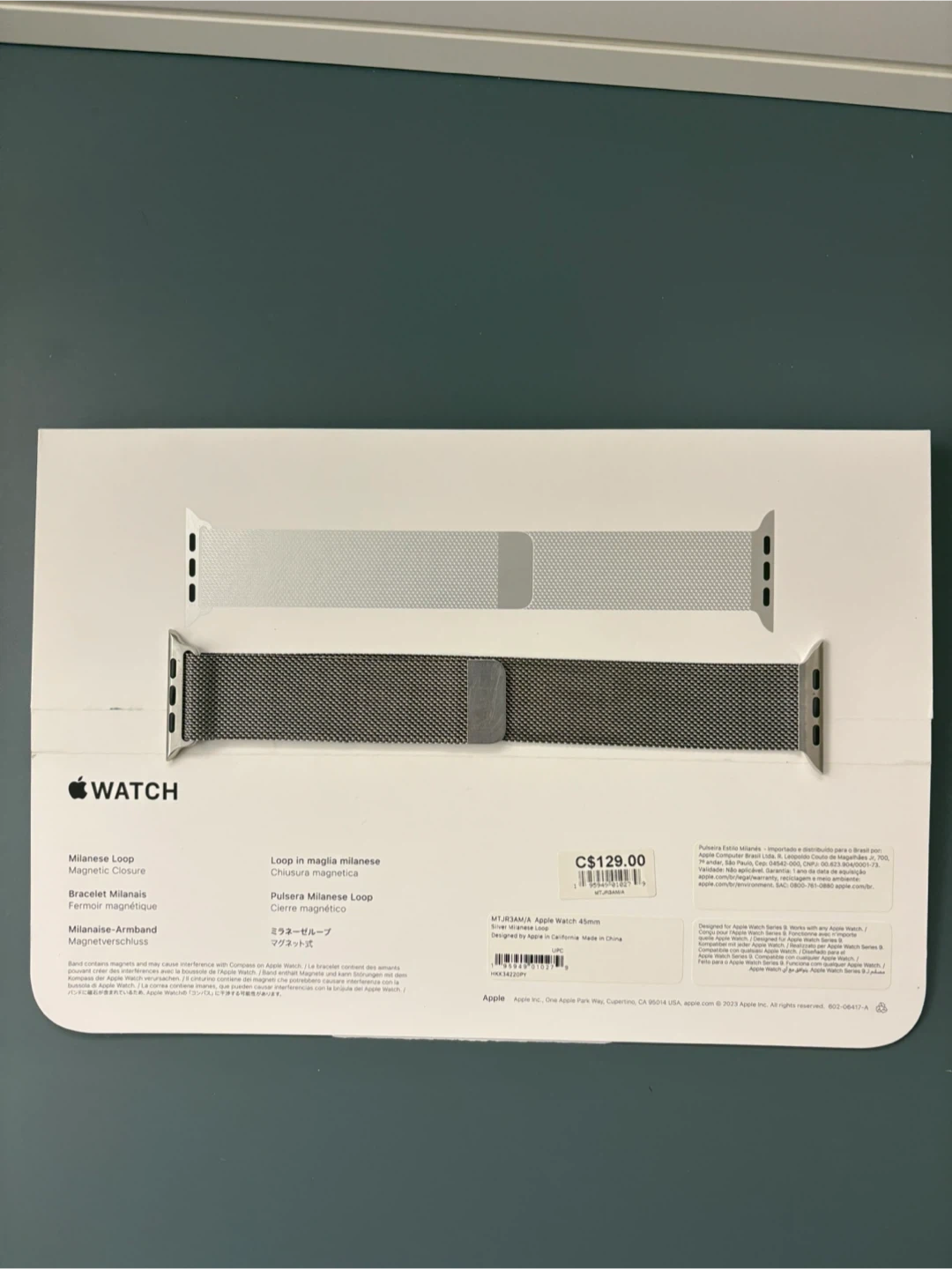 Selling an Apple Watch 45mm Milanese Loop in silver! This stylish band is in excellent condition and comes with the original box. It's designed for a comfortable fit and adds a touch of elegance to your Apple Watch. Originally priced at C$129.00