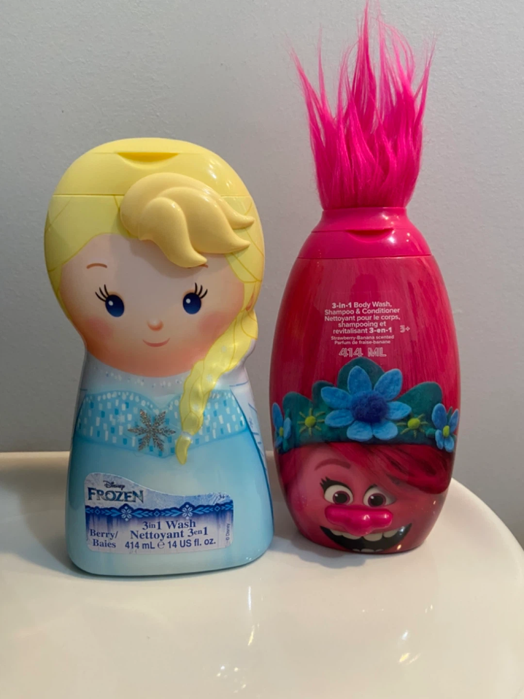 a Trolls 3in1 body wash, shampoo, and conditioner (strawberry-banana scented)