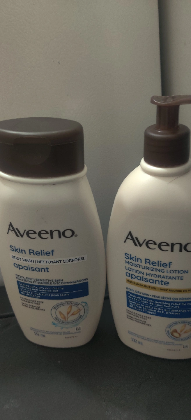 Selling a set of Aveeno Skin Relief products! You'll get both the body wash and the moisturizing lotion, perfect for itchy, dry, and sensitive skin. Both are fragrance-free and paraben-free. The bottles contain 532 mL each. The pickup area is shown with listing so please check before contacting me
