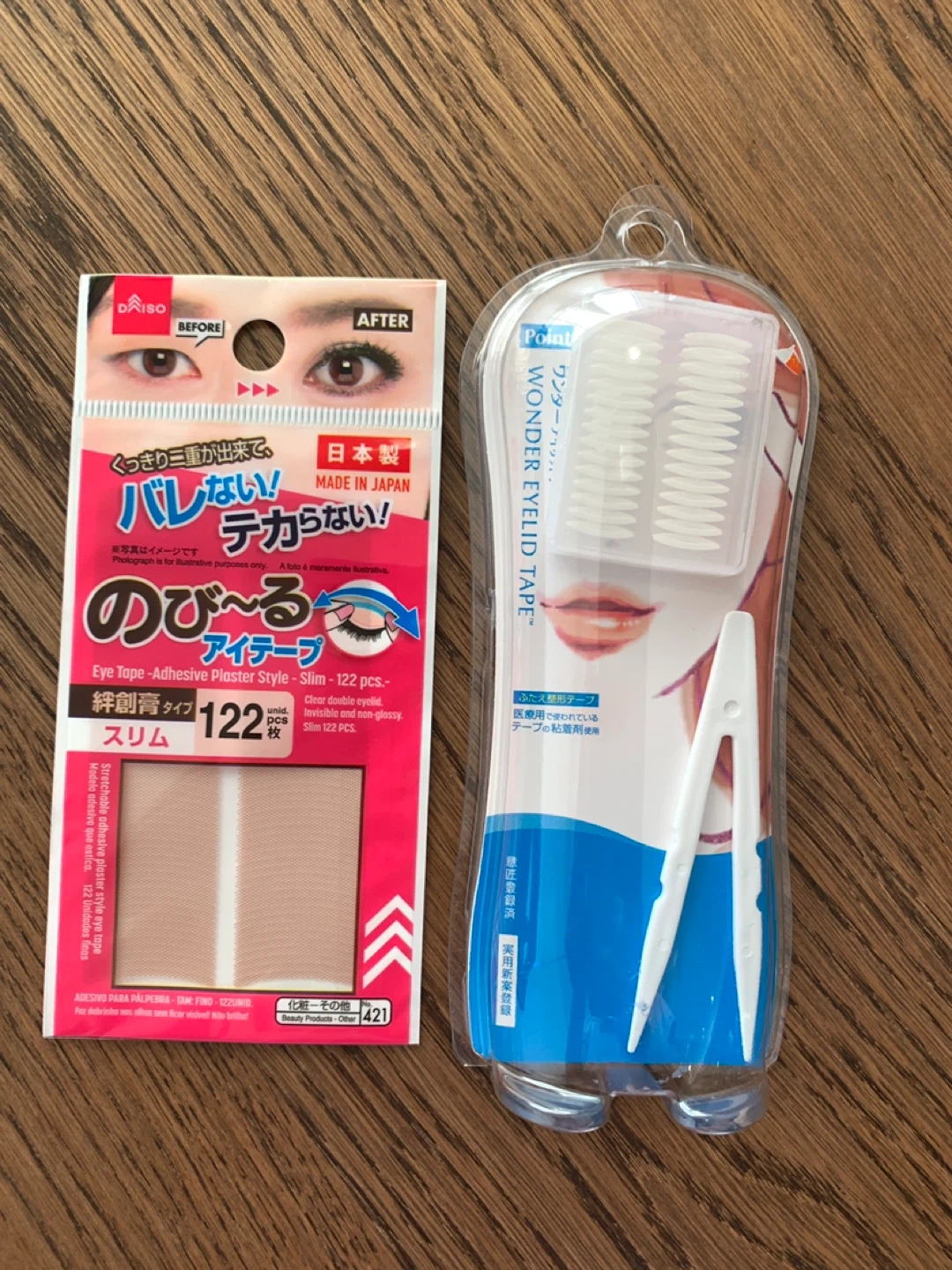 Selling a pack of Daiso Eye Tape - Adhesive Plaster Style (Slim - 122 pcs) and Point Wonder Eyelid Tape. Perfect for creating a clear double eyelid look! Both are invisible and non-glossy.