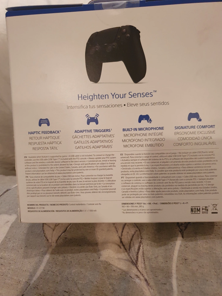 Selling a brand new, still-in-box Sony PlayStation 5 DualSense wireless controller in black! It features haptic feedback, adaptive triggers, a built-in microphone, and signature comfort. It's designed for the PS5 and offers an immersive gaming experience. The box includes the controller itself. Dimensions are 160 × 66 × 106 mm, and it weighs approximately 280 g