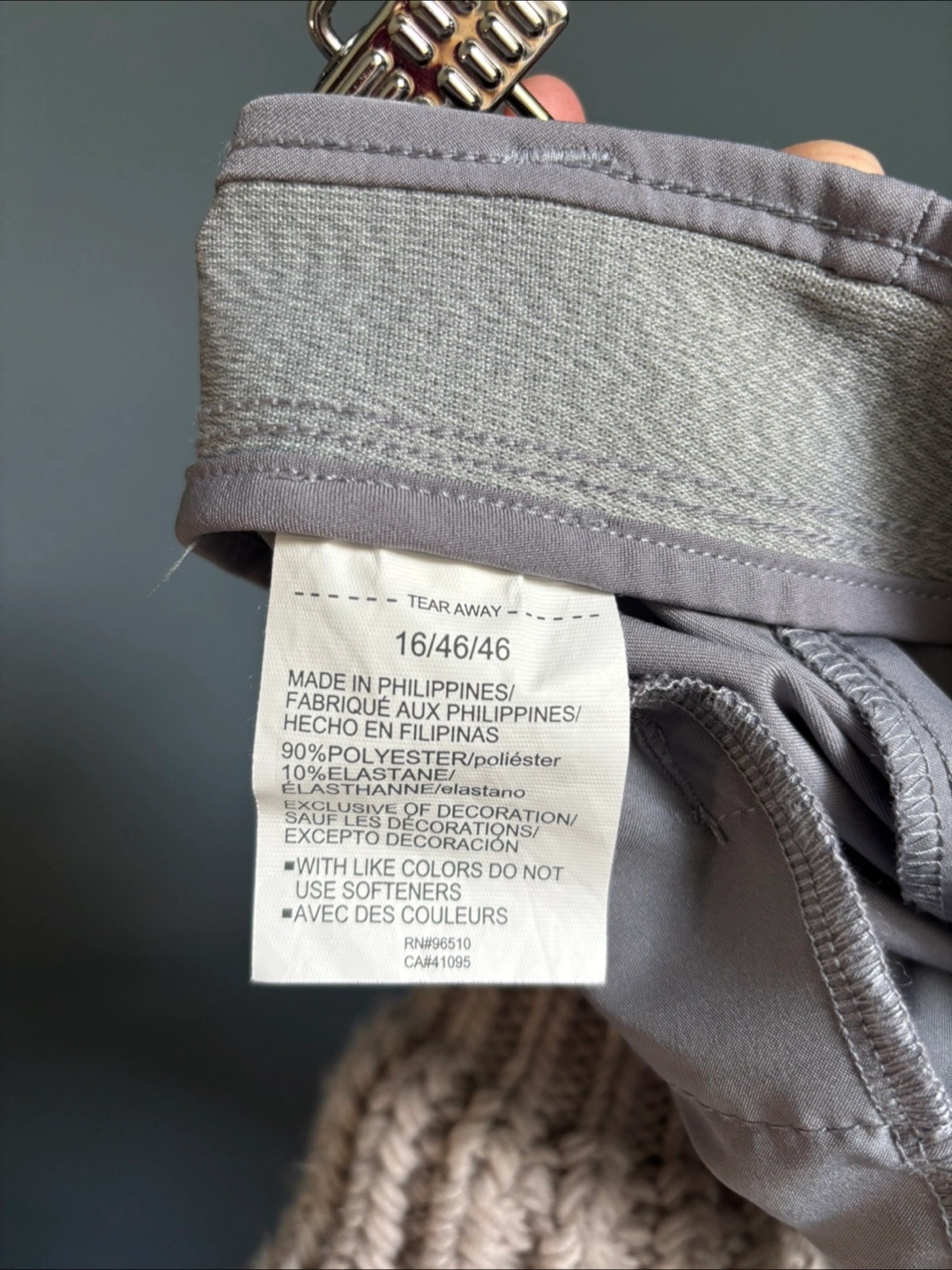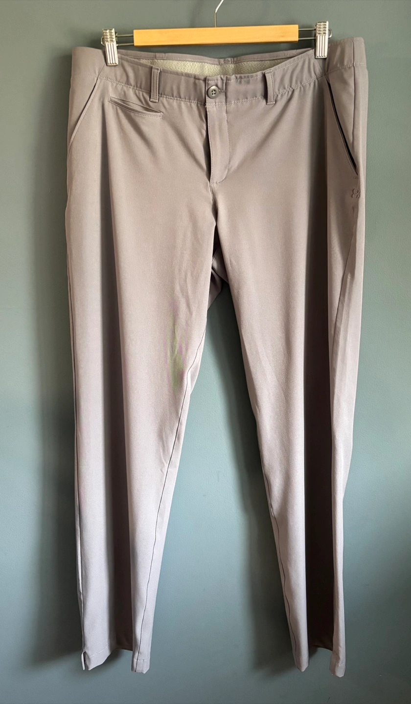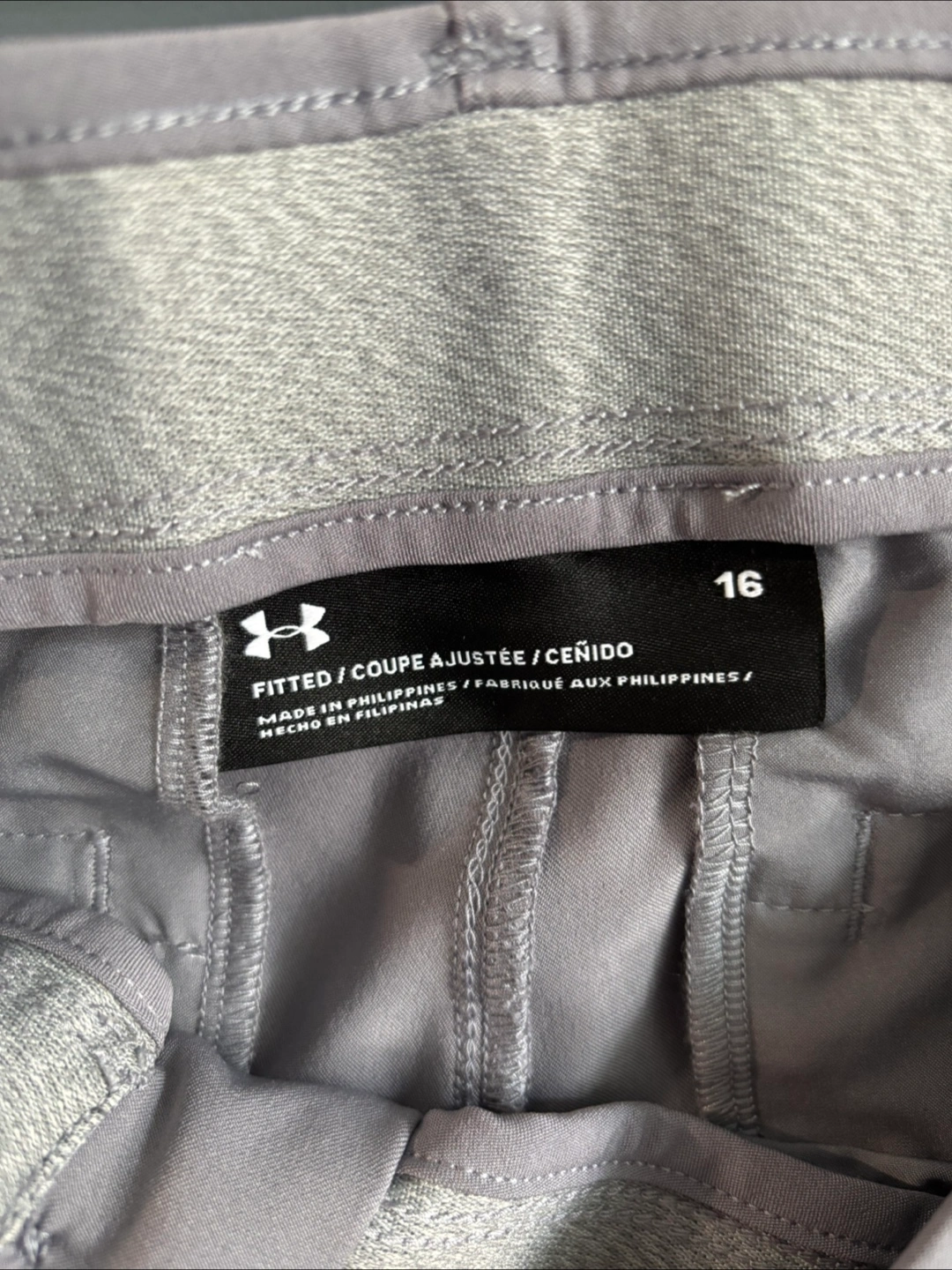 117Selling a pair of Under Armour fitted pants in a lovely grey colour! They're a size 16 and made of 90% polyester and 10% elastane. These are perfect for a comfy yet stylish look!