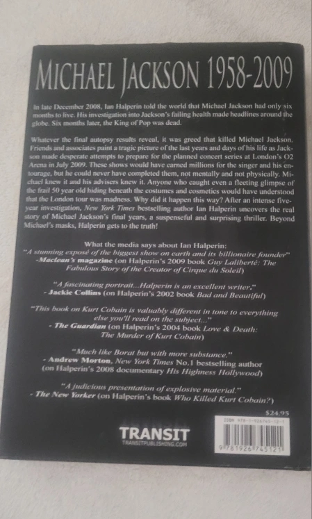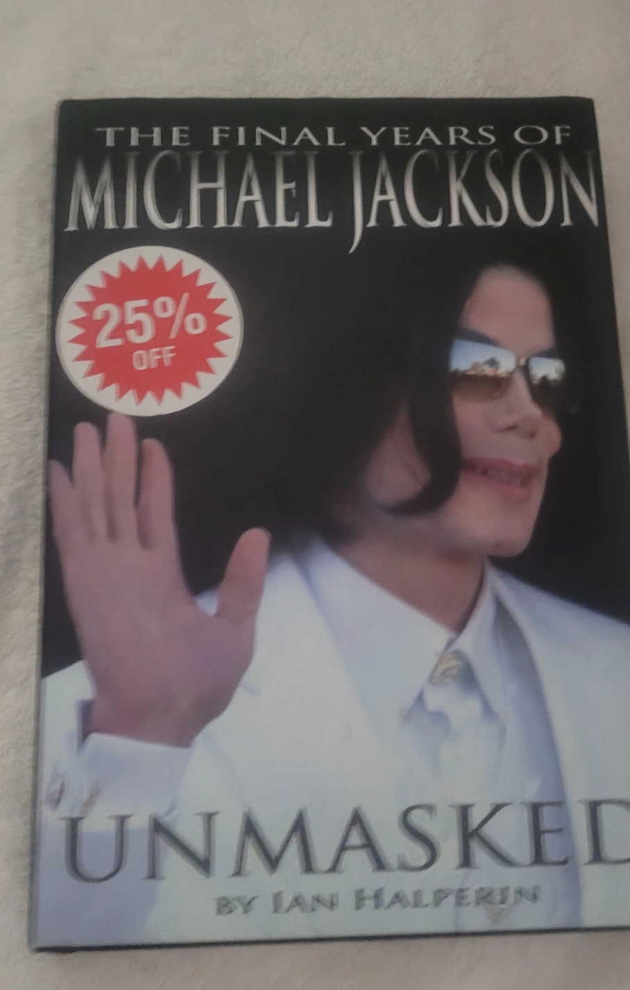 Selling a copy of "The Final Years of Michael Jackson Unmasked" by Ian Halperin! It's a biography covering Michael Jackson's life from 1958 to 2009. The book has a 25% off sticker on the cover. Great read for any fan