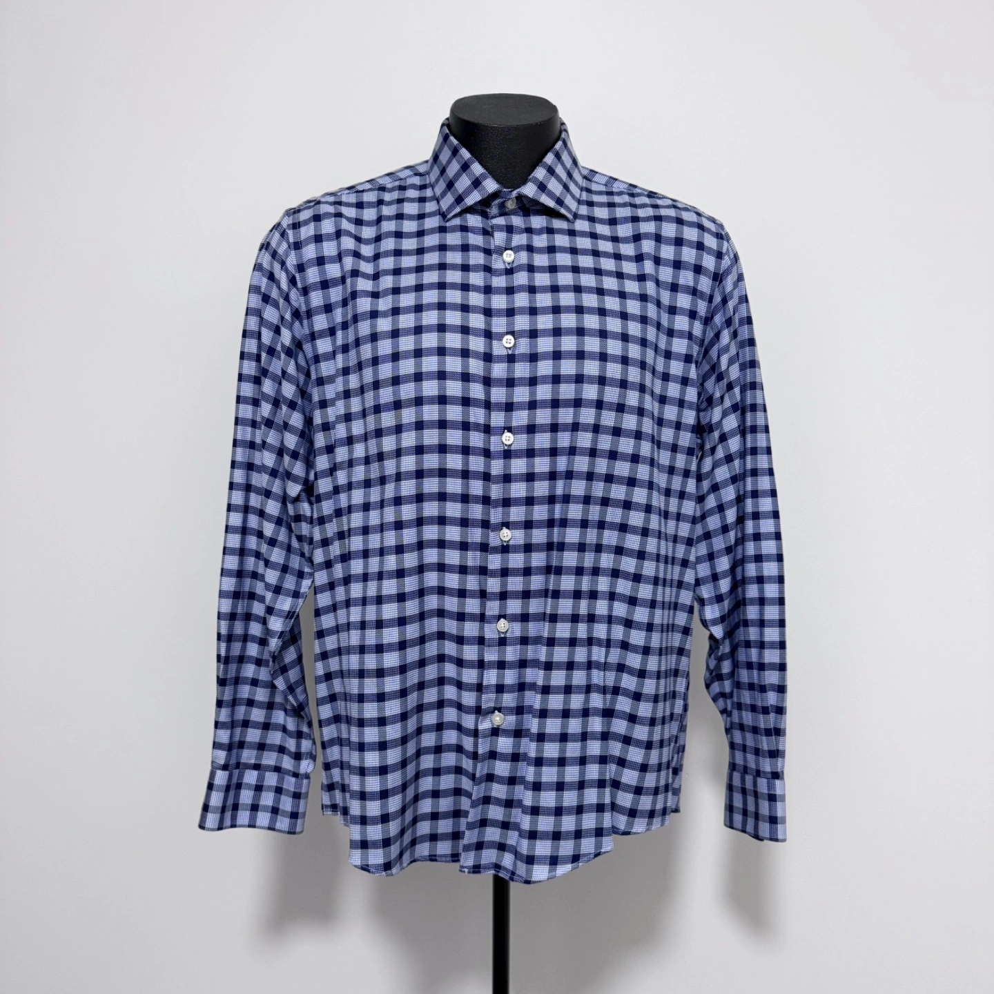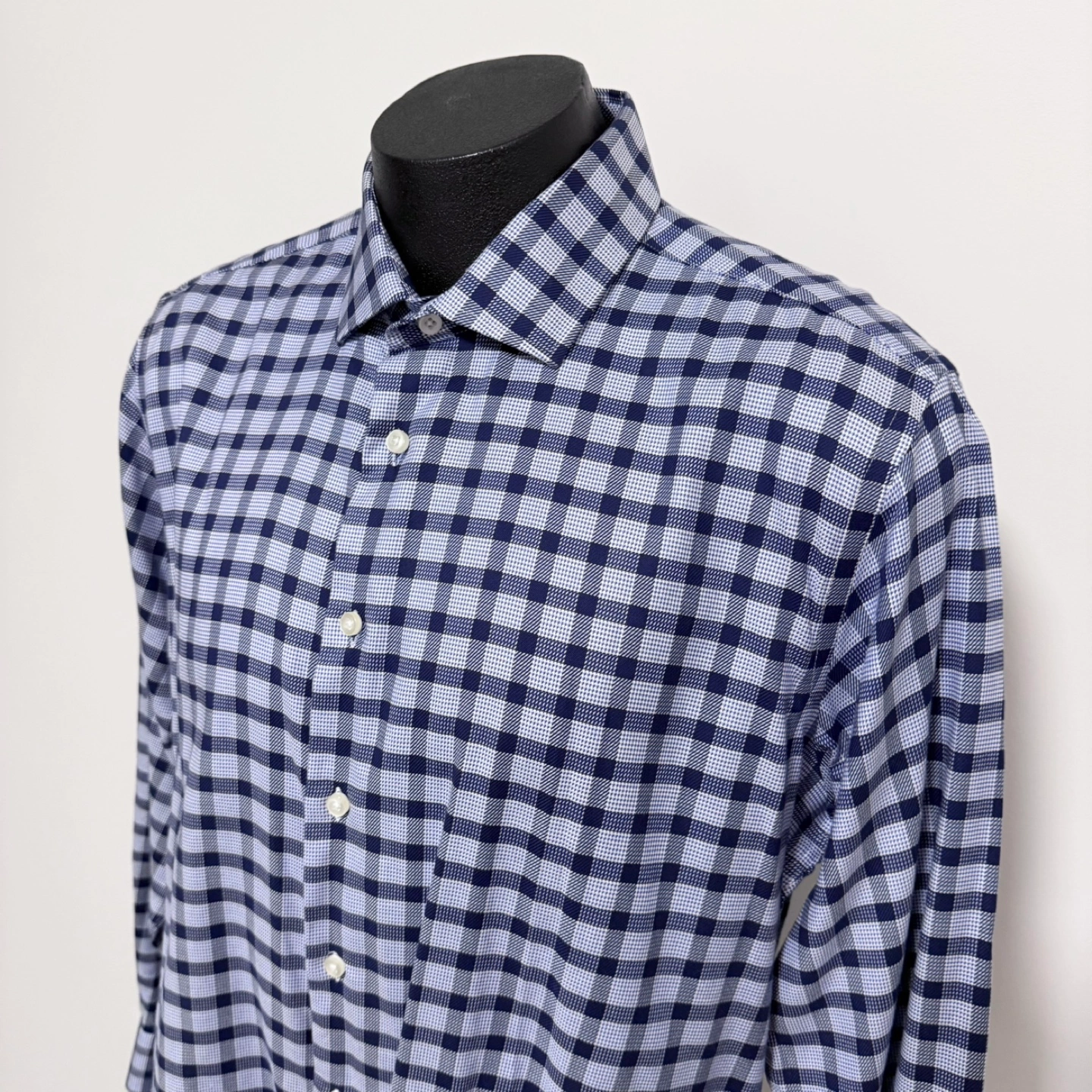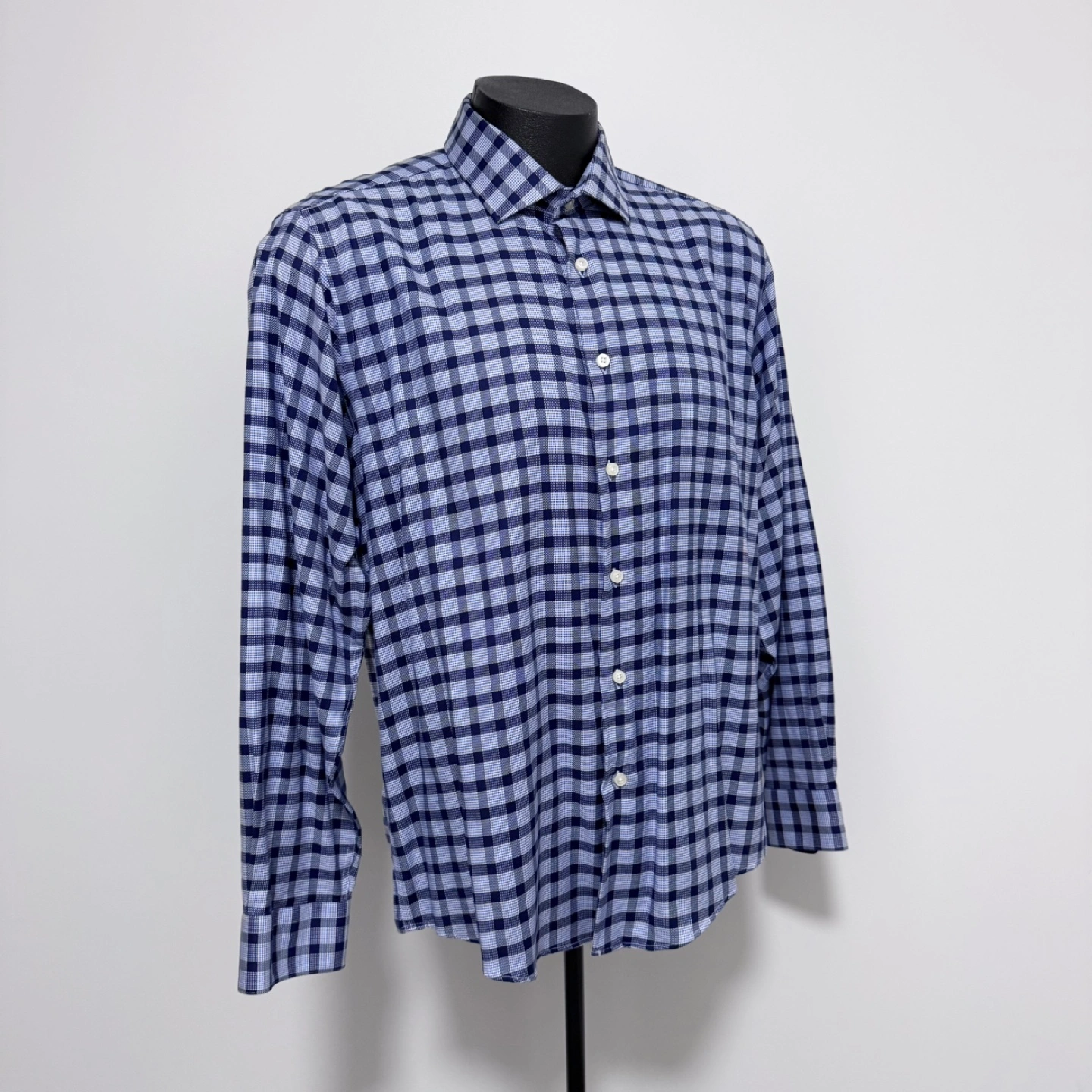 Men’s Egara cotton blue square patterned shirt, size XL (slim-fit). In clean, like-new condition