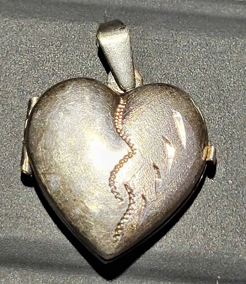 Gorgeous vintage (1920s) 925 Italian silver heart locket. This locket still has the original cloth inserts and the cut glass for the inside of the locket (as shown in photos). Etched Italian silver heart locket. Beautiful for a one of a kind gift or for yourself.