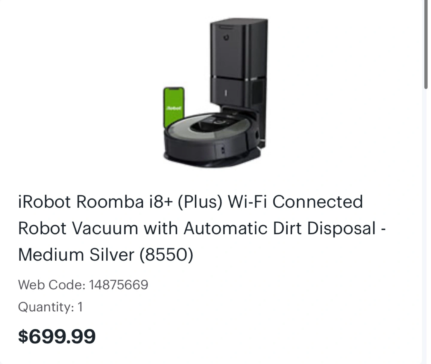 Selling an iRobot Roomba i8 robot vacuum. It's in great working condition and comes with some extra filters and a clean base bag. Perfect for keeping your floors clean with minimal effort!