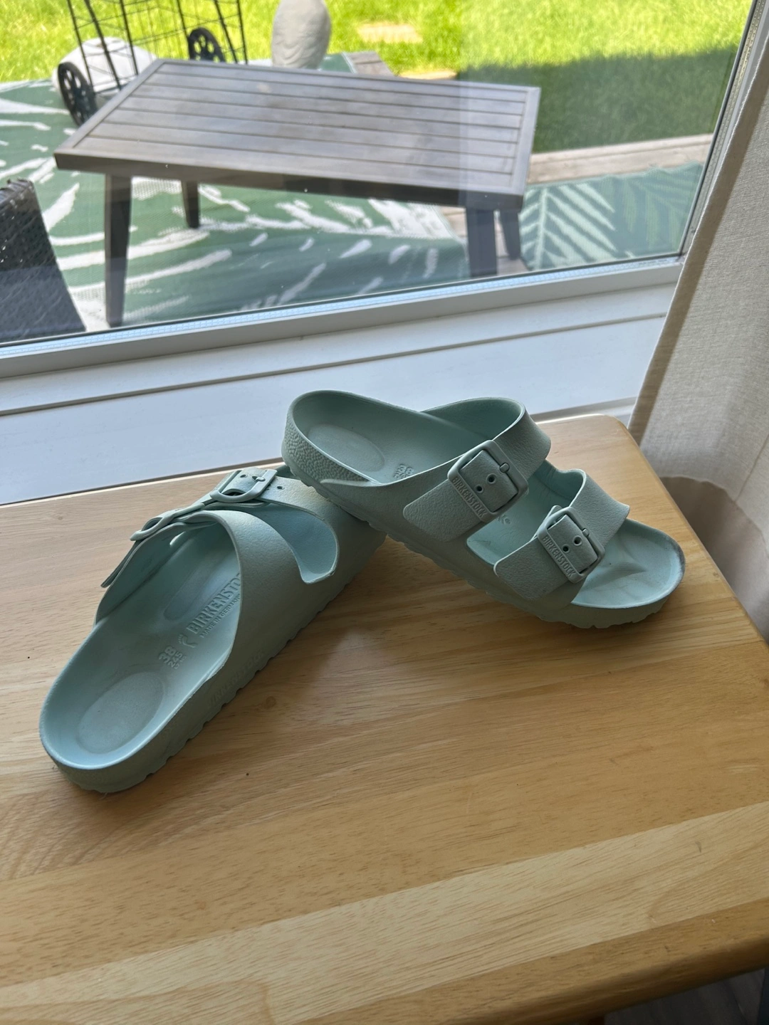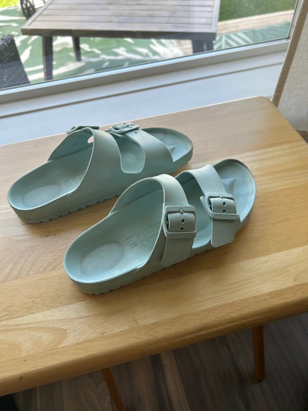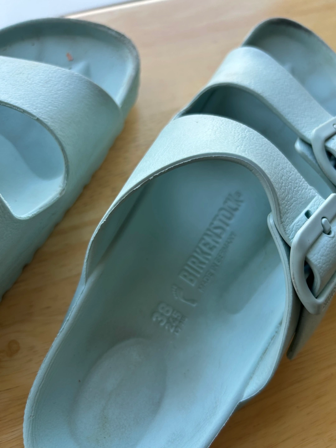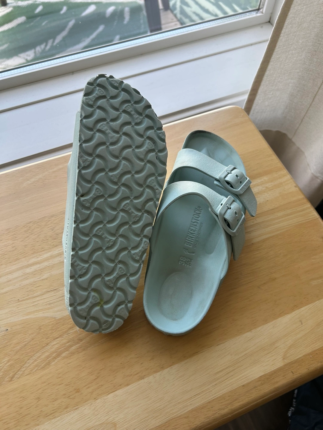 Selling a pair of Birkenstock Arizona sandals in size 38. They're a lovely light blue colour and in great shape! Perfect for summer